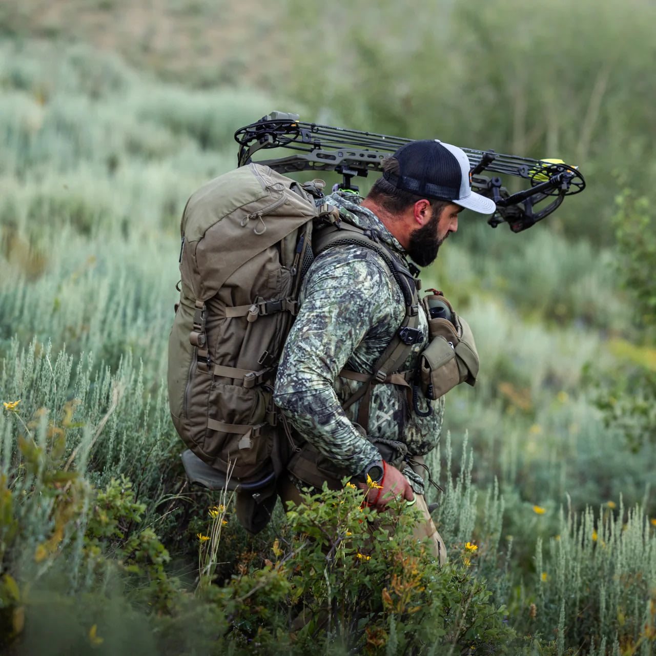 Deuxième génération de sac supplémentaire d'une capacité de 46 litres, spécialement conçu pour être combiné avec le cadre porteur MAINFRAME. Le sac se fixe au cadre à l'aide d'une fermeture éclair et de six sangles extensibles. Une fois celles-ci allongées, il est possible de fixer des équipements supplémentaires entre le cadre et le sac, tels que des étuis pour armes longues, etc. Le sac est fabriqué à partir d'une combinaison de tissu extensible 140D à double sens et de nylon 500D rip-stop avec une couche de polyuréthane protégeant contre l'humidité.