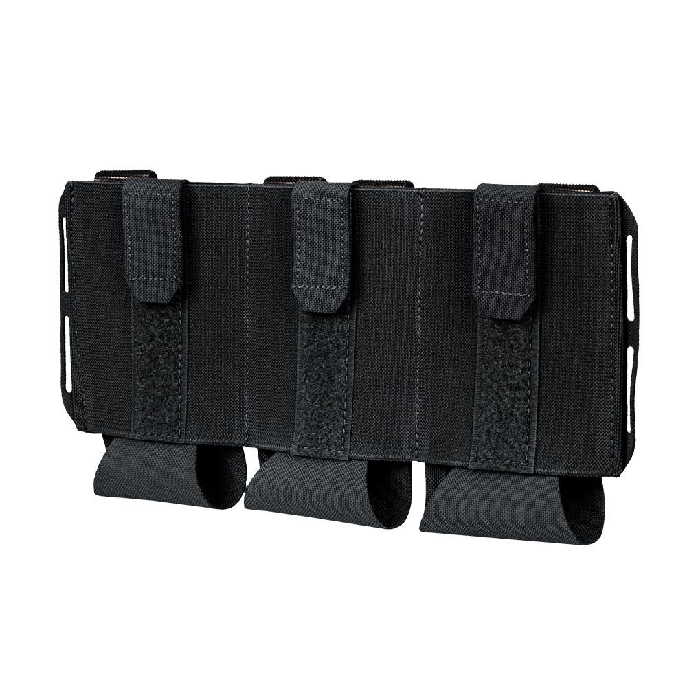 Pochette triple ouverte pour Vanquish Armour System (VAS). Fabriquée dans un matériau élastique résistant. Grâce à son fond réglable, la pochette peut contenir des chargeurs M4/AR de différentes capacités ou tout autre équipement dont vous avez besoin à portée de main. Les œillets latéraux permettent d'accrocher d'autres équipements.