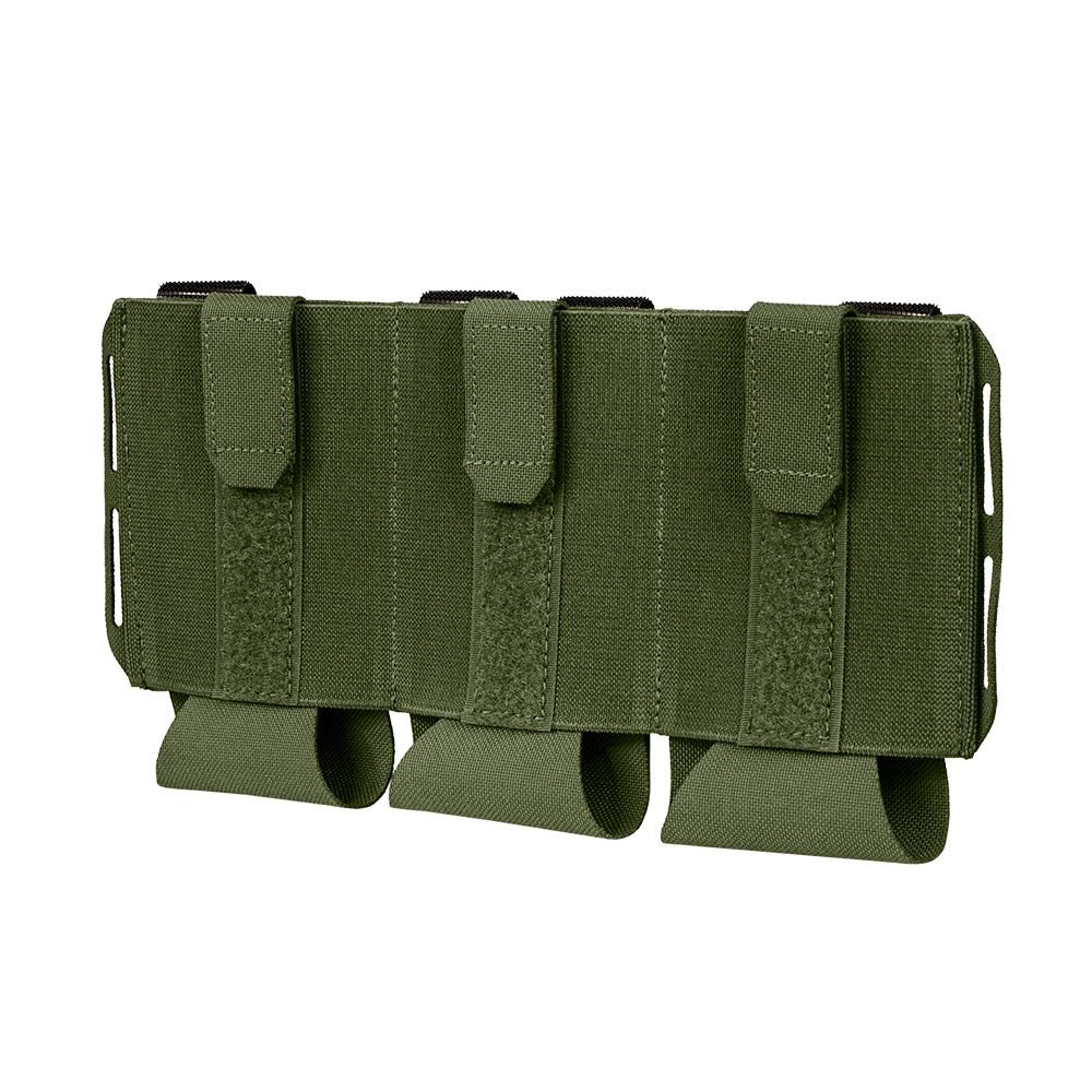 Pochette triple ouverte pour Vanquish Armour System (VAS). Fabriquée dans un matériau élastique résistant. Grâce à son fond réglable, la pochette M4/AR peut contenir des chargeurs de différentes capacités ou tout autre équipement dont vous avez besoin à portée de main. Les œillets latéraux permettent d'accrocher d'autres équipements.
