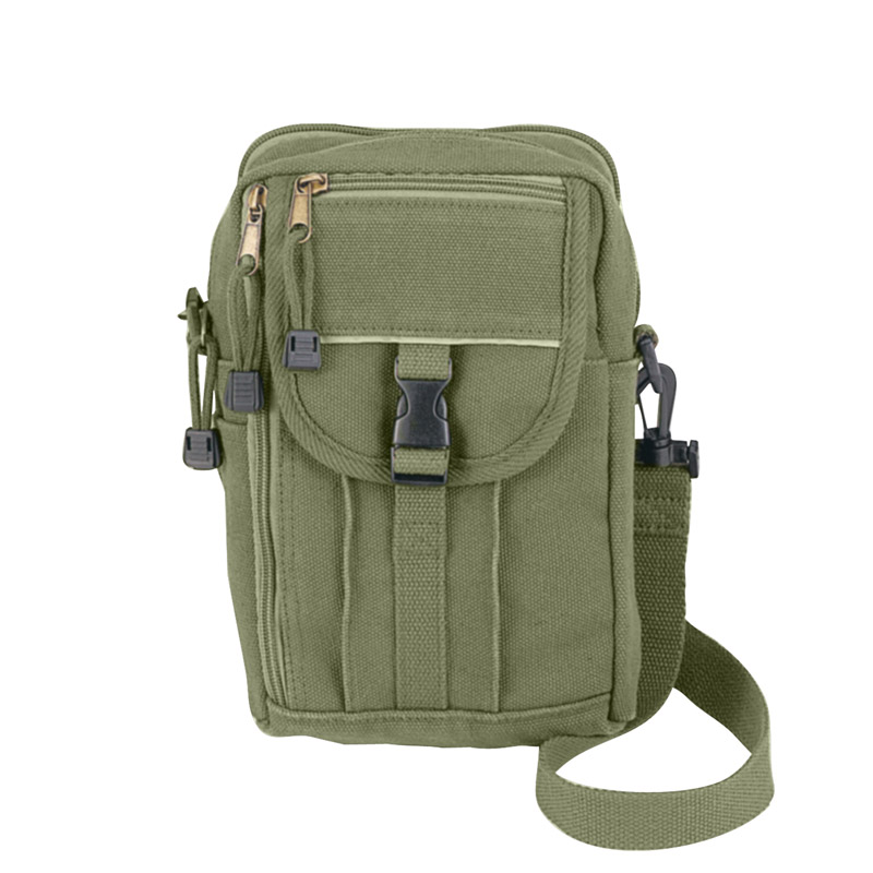 Petit sac à bandoulière pratique, idéal pour les documents. Poches spéciales pour cartes de paiement, passeport, téléphone, etc. Il est fabriqué en toile de coton épaisse. Bandoulière amovible et réglable, large sangle à l'arrière (environ 8,5 cm) pour l'attacher par exemple à une ceinture. Dimensions : 23 x 17 x 10 cm.