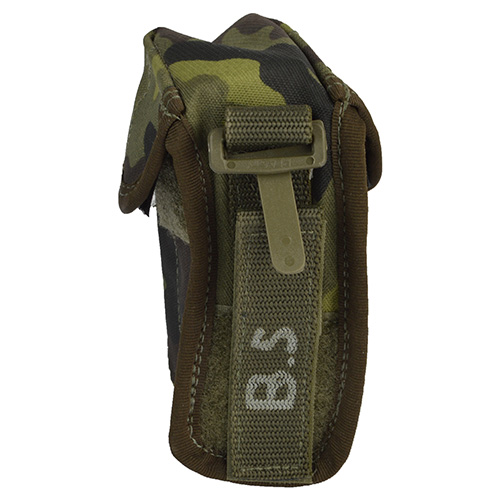 Étui double de haute qualité, au motif camouflage de l'armée tchèque, fabriqué par le fabricant tchèque SPM Liberec. Initialement conçu pour le système modulaire de transport (MNS-2000). L'étui peut également être utilisé pour un couteau, une lampe, etc. Grâce à sa fixation réglable, il se fixe facilement à la ceinture, à un gilet tactique, à un ceinturon ou à un sac à dos. Les coutures sont réalisées avec un point multiple. Fermeture à bouton-pression UH, qui permet une ouverture d'une seule main.