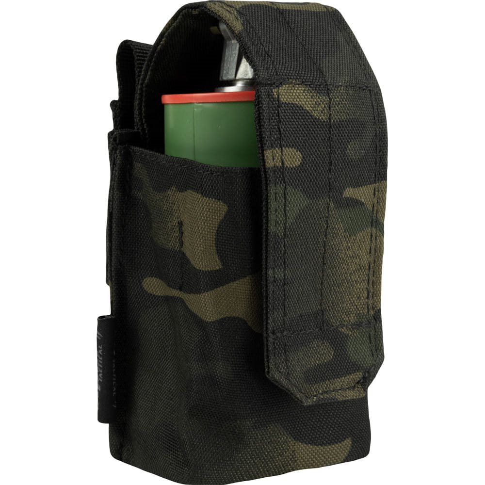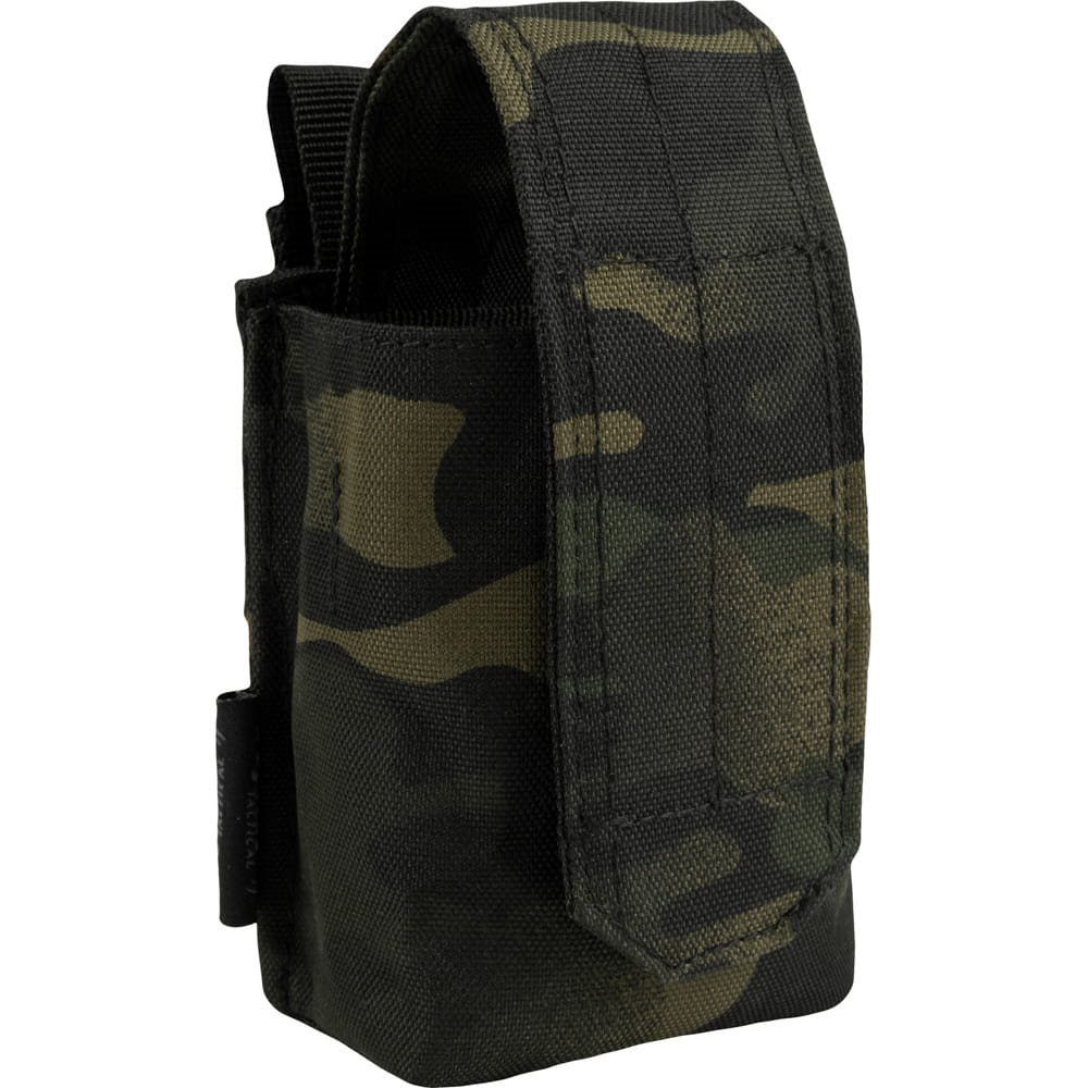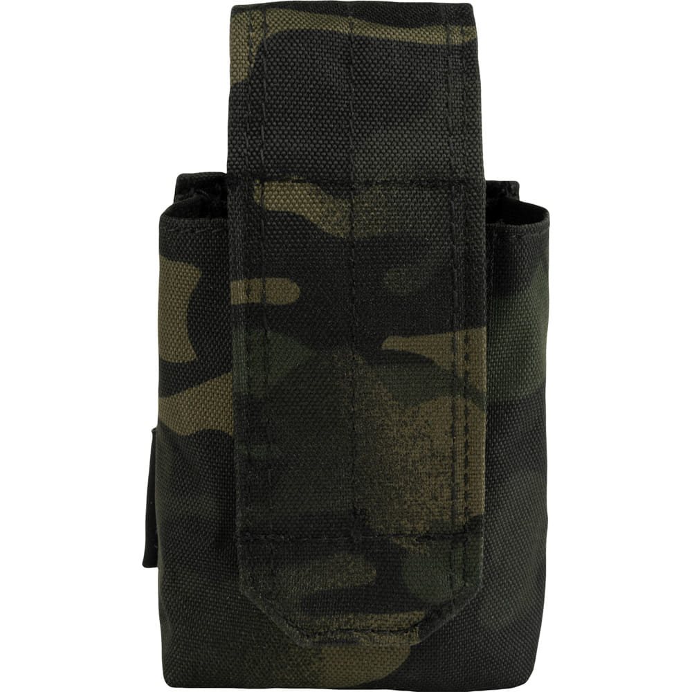 Pochette pour grenade. Système PALS permettant de placer les poches et les pochettes à votre convenance. Fermeture à scratch. Matériau : 600D CORDURA. Dimensions : environ 15-19 x 7 x 5 cm.
