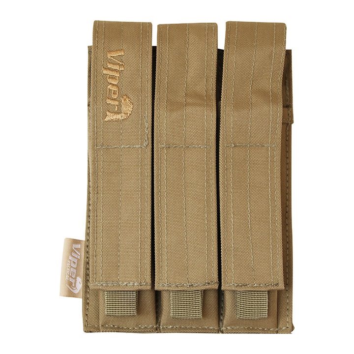 Étui pour chargeurs MP5. Système PALS permettant de positionner librement les poches et les étuis. Fermeture par velcro. Matériau : 600D CORDURA. Dimensions : environ 20-26 x 14 x 3 cm. Plus d'informations