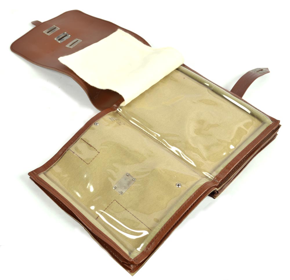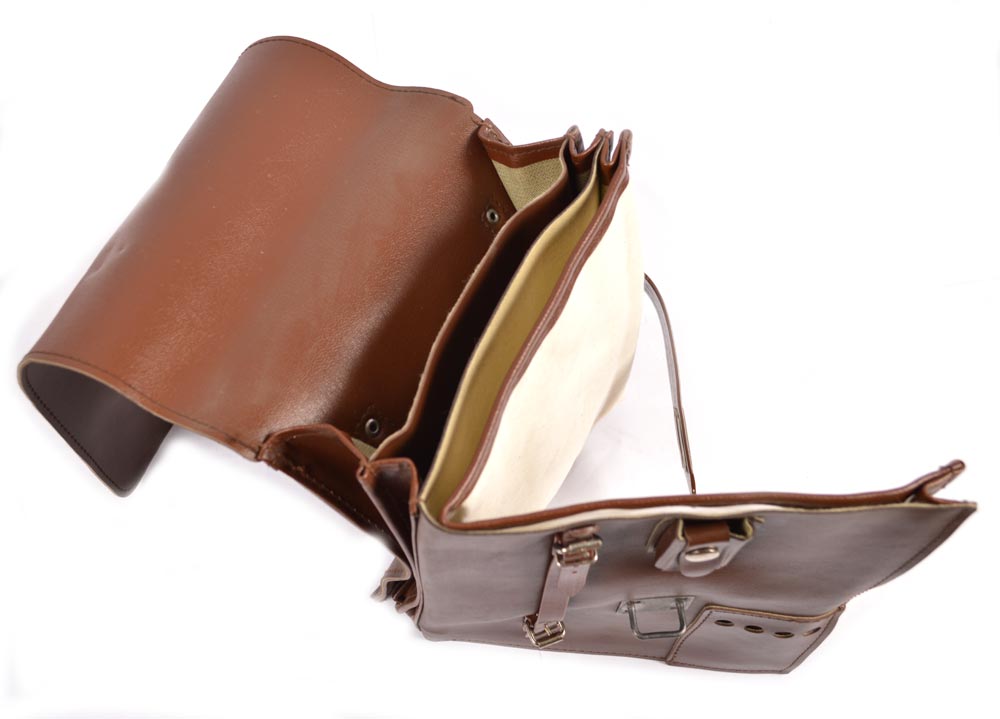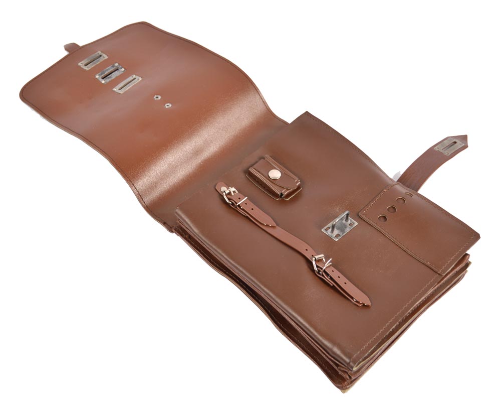 Sacoche en similicuir pour documents provenant de l'équipement de l'armée est-allemande NVA. Article d'occasion en très bon état. Livré avec une bandoulière amovible.