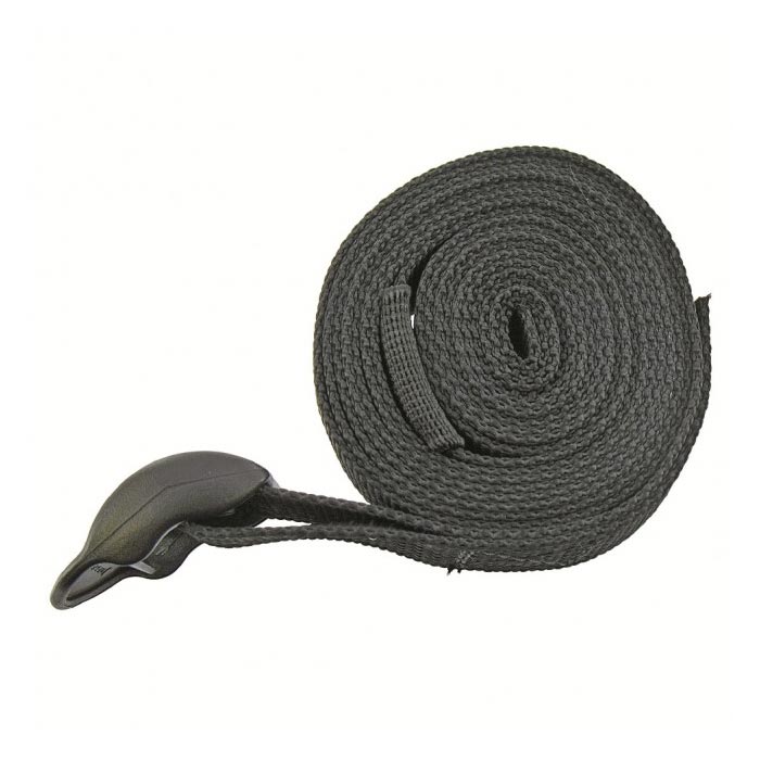 Sangle utilitaire polyvalente d'une longueur de 2 mètres et d'une largeur de 2,5 cm. Boucle en plastique à l'extrémité. Plus d'informations