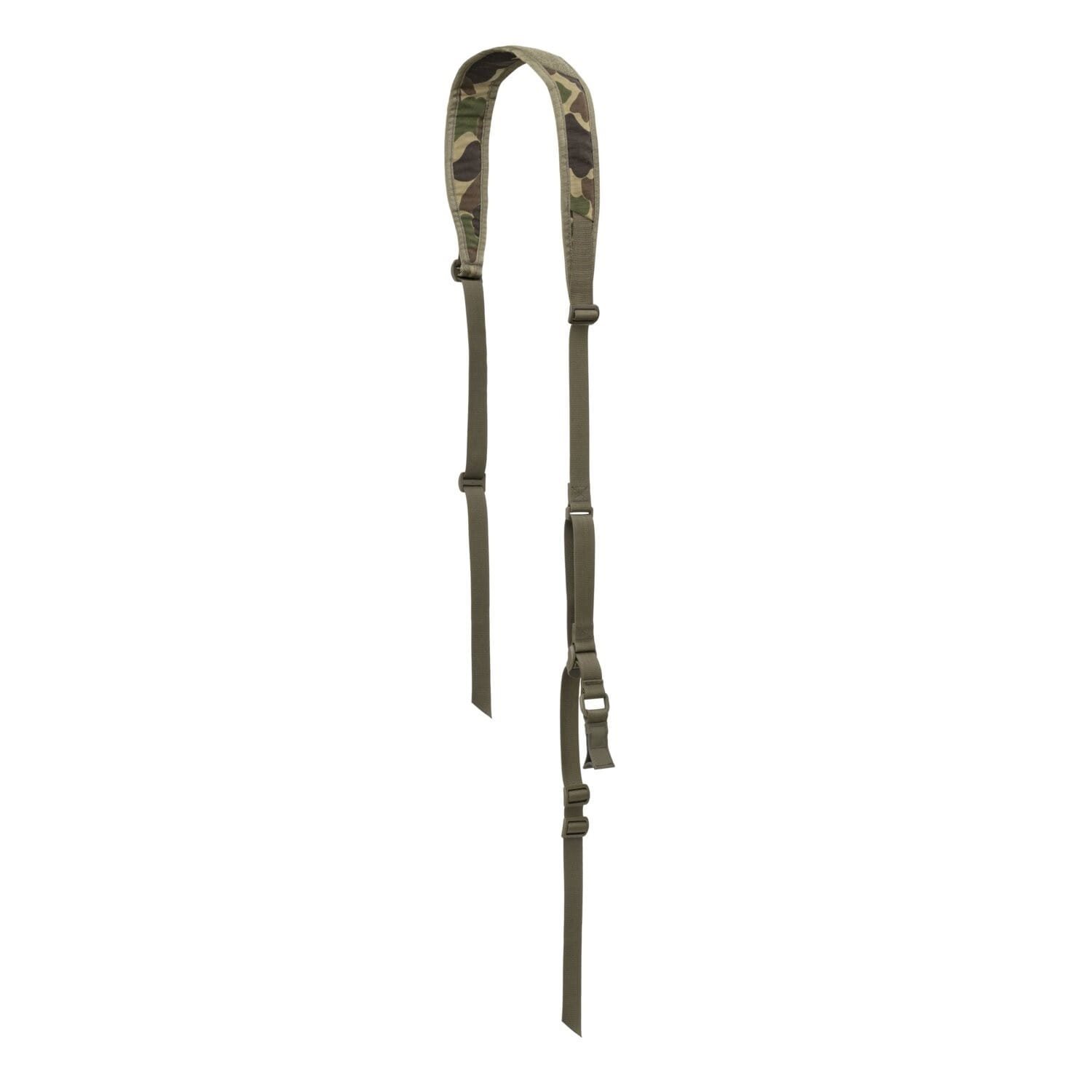 La partie principale de la sangle est fabriquée en nylon résistant et dotée d'un rembourrage en cordura qui répartit le poids de l'arme. Sur la partie supérieure de la sangle, vous trouverez également une bande Velcro permettant de fixer une étiquette ou un écusson VELCRO pour la personnalisation. La longueur de la sangle est très facile à régler rapidement.