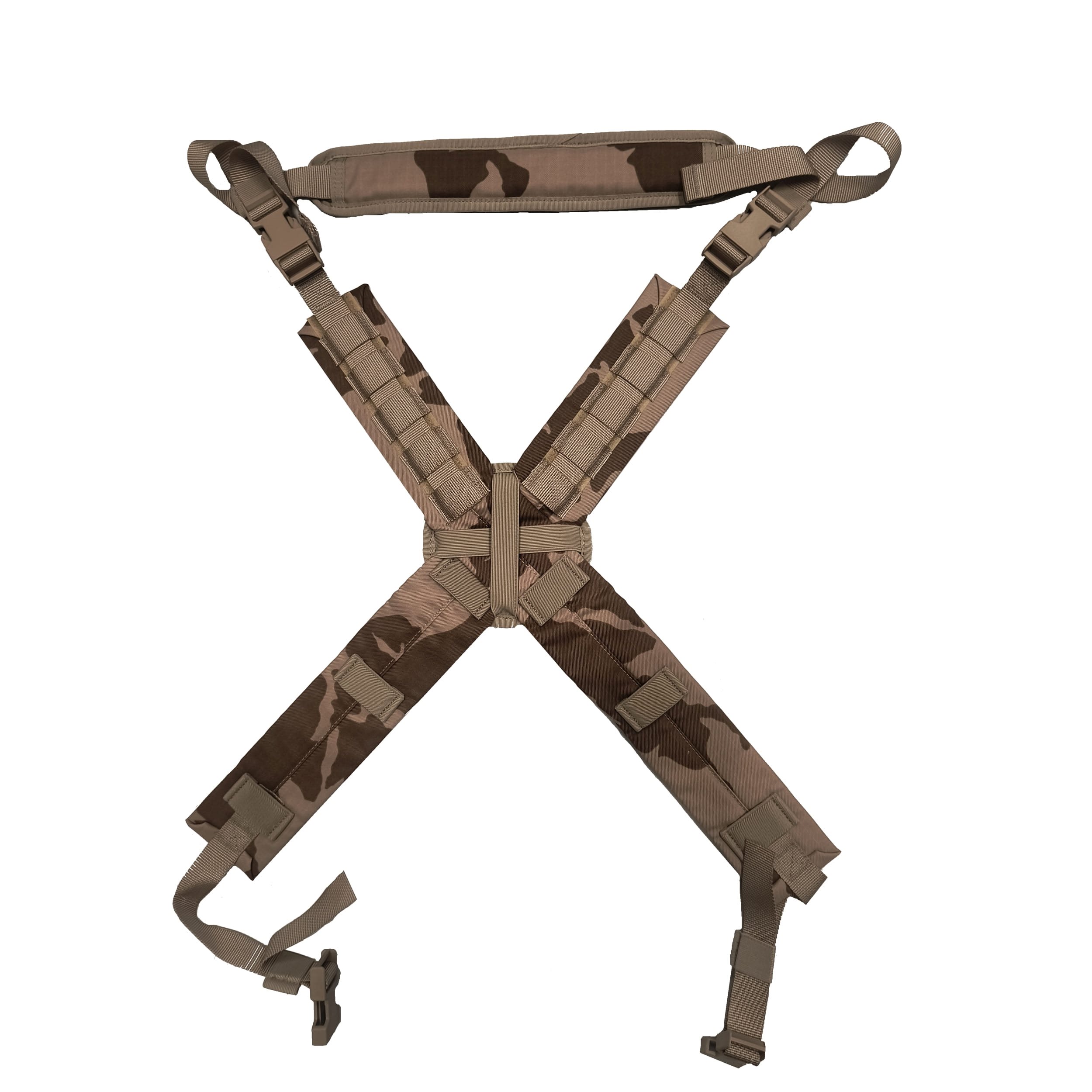 Sangles supplémentaires pour le NPP-2006, qui permettent de transformer le porte-plaques en un chestrig de type RRV, tout en conservant la possibilité de ranger une plaque balistique dans la partie avant du gilet. Convient par exemple aux conducteurs. Les sangles rembourrées pour les épaules sont en forme de X et sont reliées dans le dos par un « disque » amovible en maille 3D. La longueur des sangles peut être réglée indépendamment à l'avant et à l'arrière. Pour fixer d'autres équipements, elles sont équipées d'une attache à l'avant et de passants élastiques à l'arrière. La sangle lombaire est réglable aux deux extrémités et est équipée d'un rembourrage amovible.