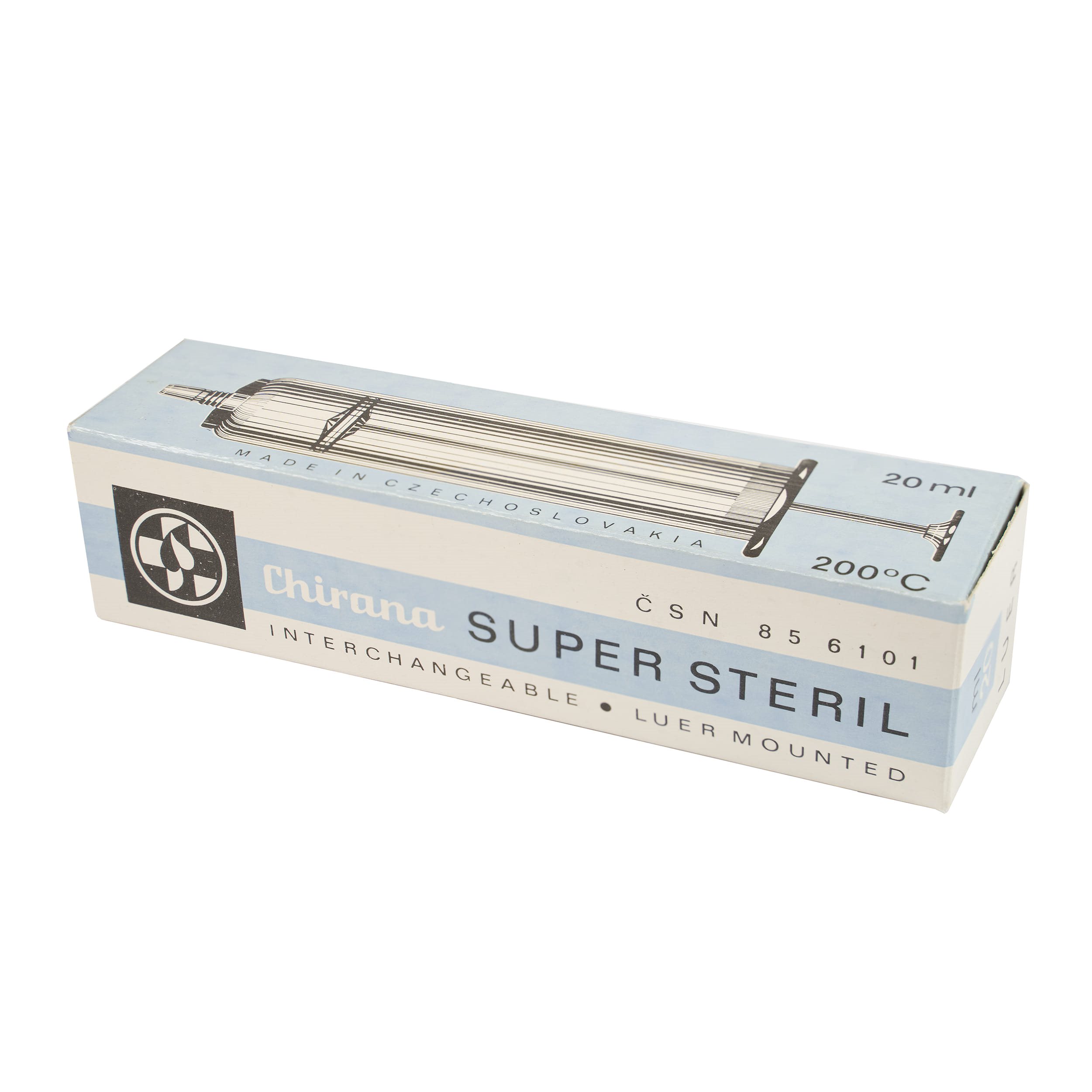 Seringue en verre. Volume d'injection 20 ml. Produit stocké depuis longtemps, sans garantie de fonctionnalité. Plus d'informations