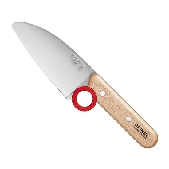 Le set de cuisine pour enfants Opinel comprend un éplucheur et un couteau avec un anneau spécial pour protéger les doigts et un protège-doigts pratique. Les anneaux de protection et le protège-doigts sont en plastique résistant de couleur rouge vif, les manches sont en bois de hêtre verni.