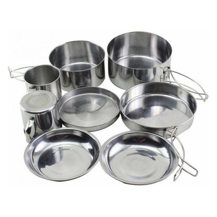 Ensemble de vaisselle en acier inoxydable pour le camping, idéal pour deux personnes. Conçu pour vous satisfaire.
