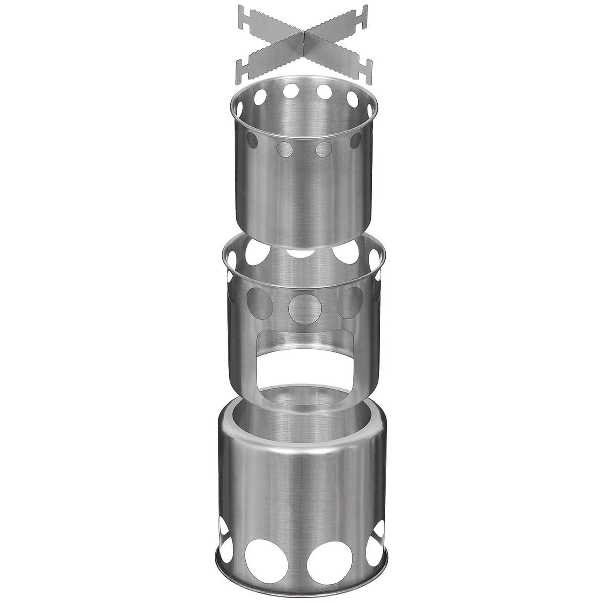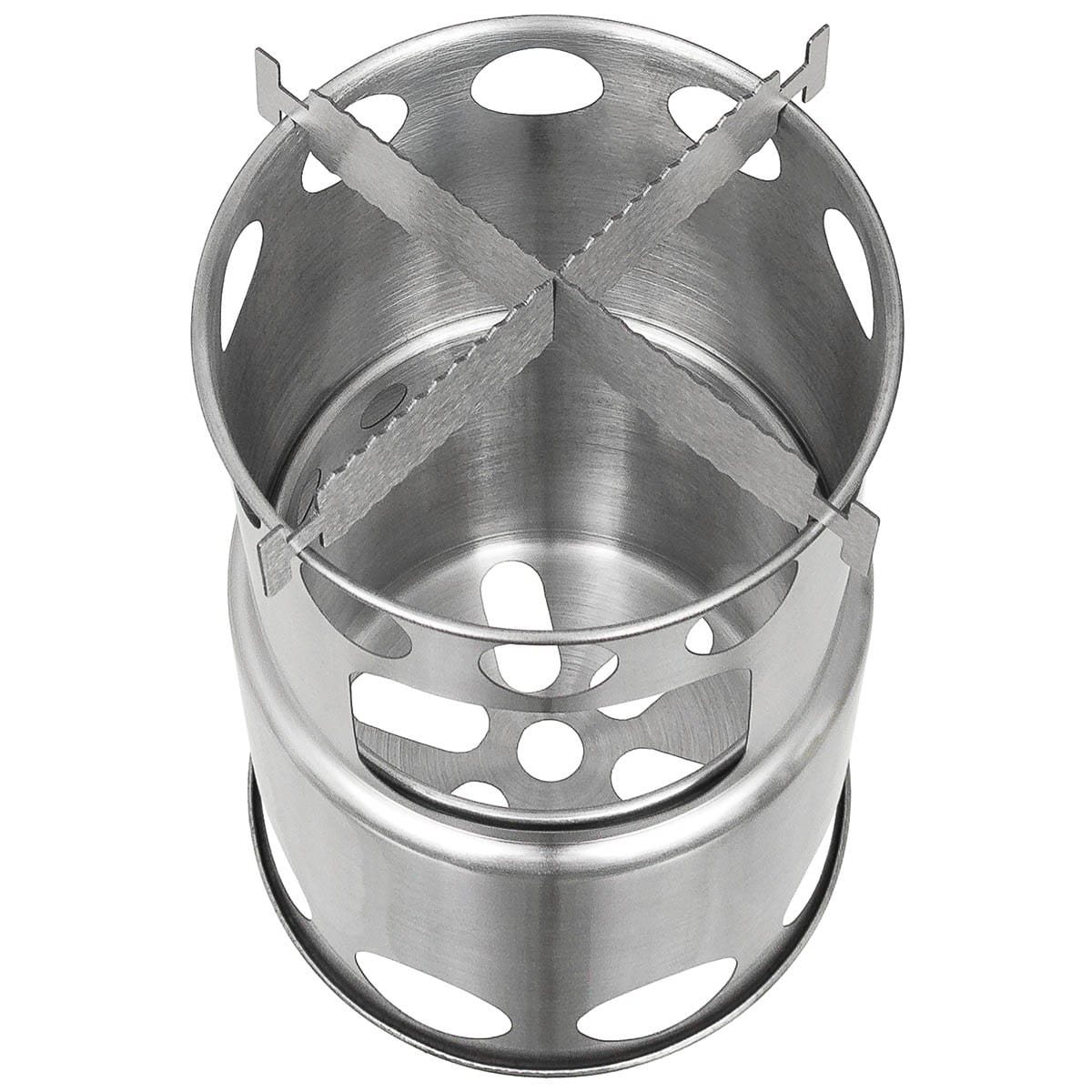 Réchaud de voyage adapté aux combustibles solides. Combustion efficace grâce à une conception bien pensée qui fonctionne comme un réchaud à bois classique.
