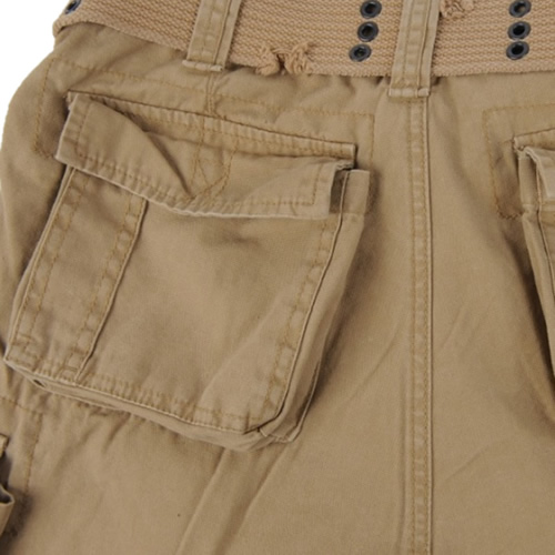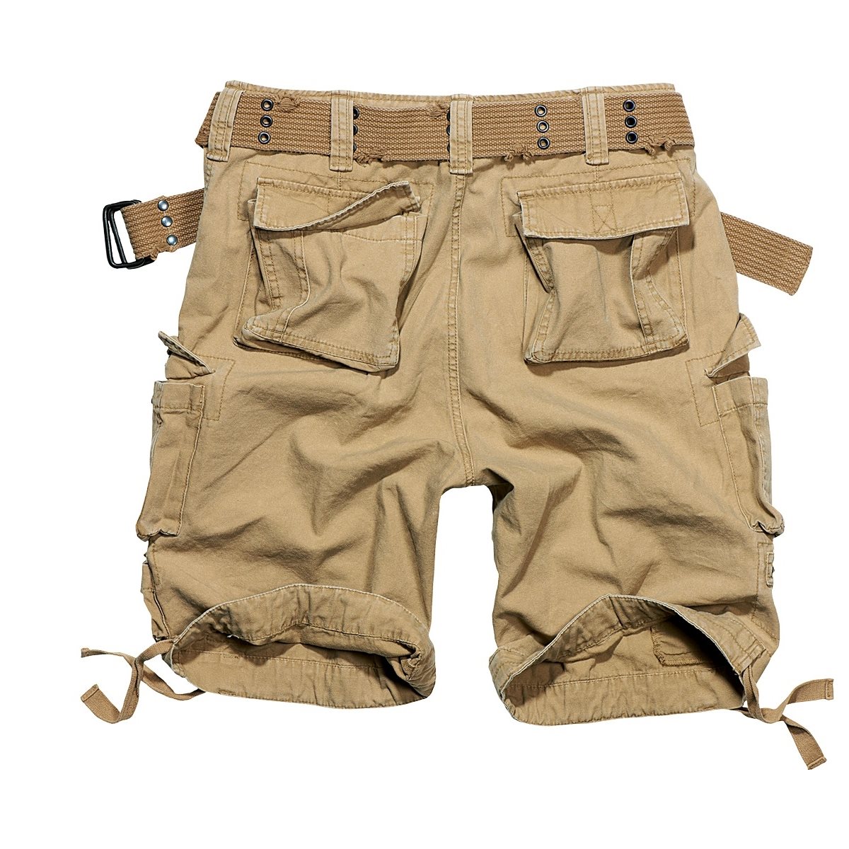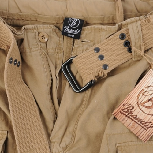 Short cargo d'été léger en coton résistant, de style vintage. Ce short présente une coupe ample et confortable, une fermeture classique à glissière et bouton, de nombreux poches et une ceinture de qualité. Il est doté de nombreuses poches. Les poches pour les mains sont en biais et suffisamment profondes pour y ranger un portefeuille ou un smartphone. En dessous, on trouve les poches cargo typiques de Brandit, fermées par un rabat à boutons-pression. Sous la poche cargo gauche, il y a deux petites poches idéales pour ranger de petits objets. Sous la poche cargo droite, vous trouverez une petite poche plate fermée par une fermeture éclair. À l'arrière, le short est dominé par deux poches plus spacieuses, qui sont sécurisées par une patte à boutons-pression pour éviter que leur contenu ne tombe. Pour plus de confort, les ourlets inférieurs des jambes peuvent être resserrés à l'aide de lacets.