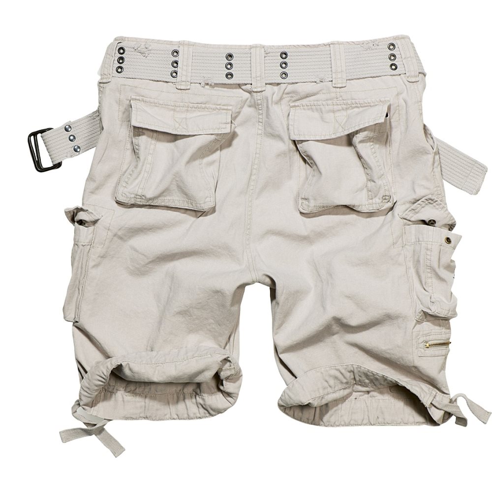 Short cargo d'été léger en coton résistant de style vintage. Ce short présente une coupe ample et confortable, une fermeture classique à glissière et bouton, de nombreux rangements et une ceinture de qualité. Il est doté de nombreuses poches. Les poches pour les mains sont en biais et suffisamment profondes pour y ranger un portefeuille ou un smartphone. En dessous, on trouve les poches cargo typiques de Brandit, fermées par un rabat à boutons-pression. Sous la poche cargo gauche, il y a deux petites poches idéales pour ranger de petits objets. Sous la poche cargo droite, vous trouverez une petite poche plate fermée par une fermeture éclair. À l'arrière, le short est dominé par deux poches plus spacieuses, qui sont sécurisées par une patte à boutons-pression pour éviter que leur contenu ne tombe. Pour plus de confort, les ourlets des jambes peuvent être resserrés à l'aide de cordons.
