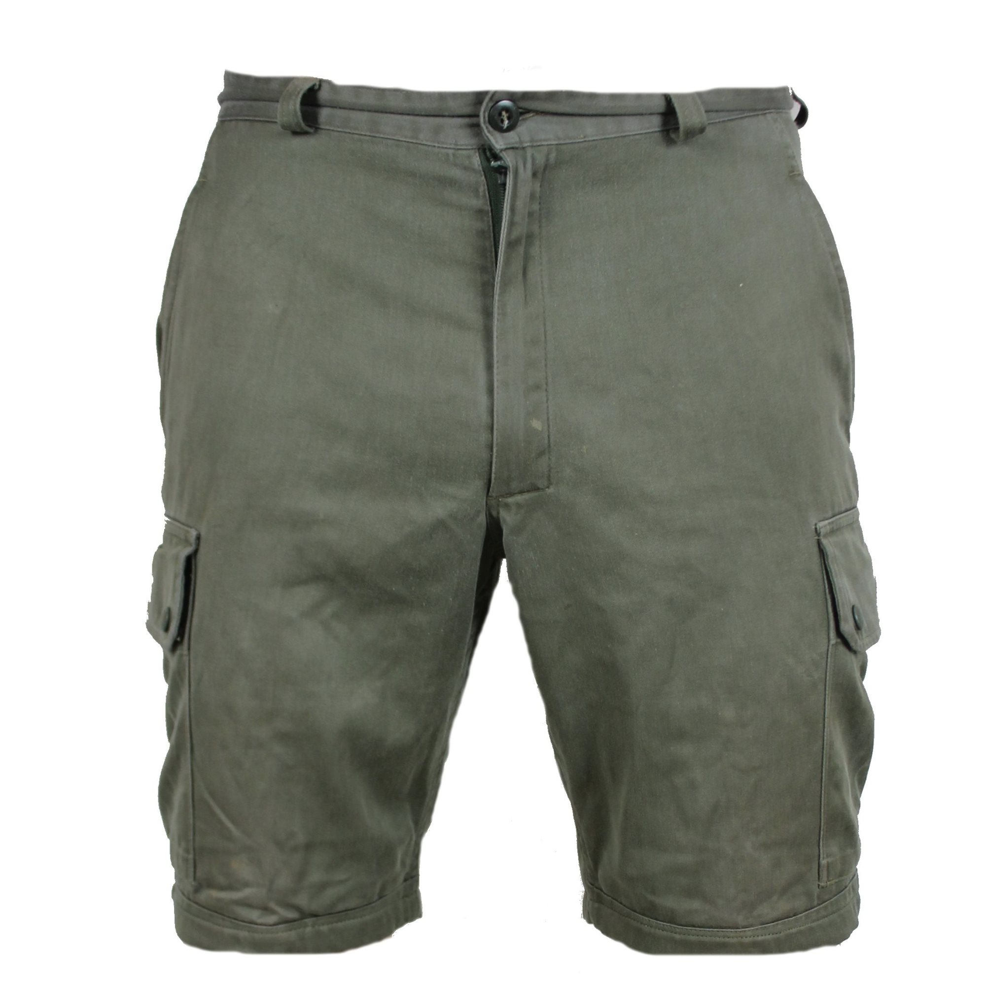 Short provenant des stocks de l'armée française. Article d'occasion. Fermeture à glissière avec bouton, poches sur les cuisses, deux poches pour les mains. Plus d'informations