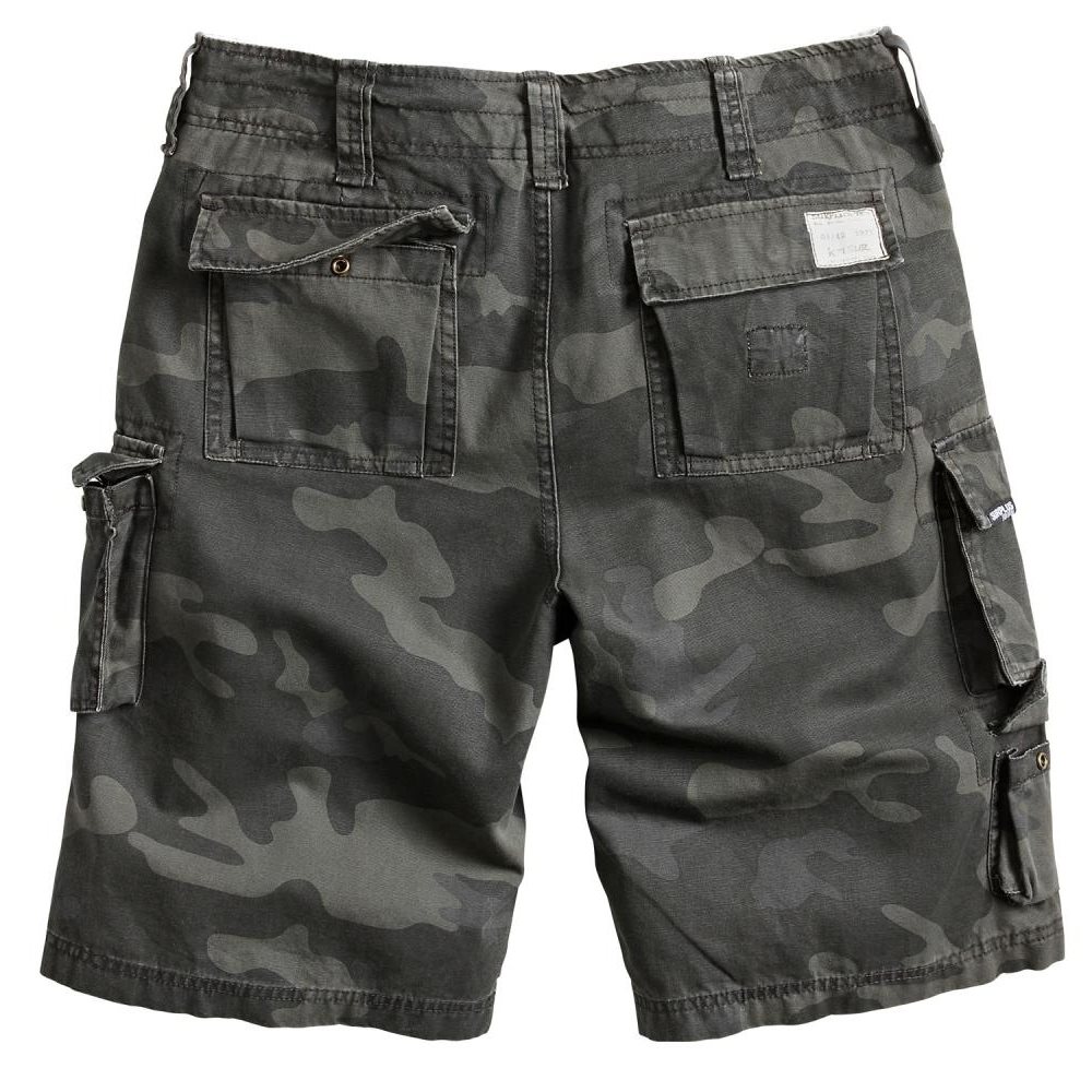 La fermeture est assurée par une combinaison classique de fermeture éclair métallique et de bouton. Les poches pour les mains ont des entrées en biais et sont suffisamment profondes pour ranger les petits accessoires et objets de valeur indispensables. Sur les cuisses se trouvent de spacieuses poches cargo fermées par des rabats à boutons-pression. Elles peuvent facilement contenir de petits appareils électroniques, un en-cas, etc. Sous la poche cargo gauche, vous trouverez également une petite poche fermée par un rabat à boutons-pression. Les deux poches arrière sont également très spacieuses et se ferment également à l'aide de boutons-pression. Les passants des shorts peuvent accueillir des ceintures d'une largeur maximale de 50 mm.