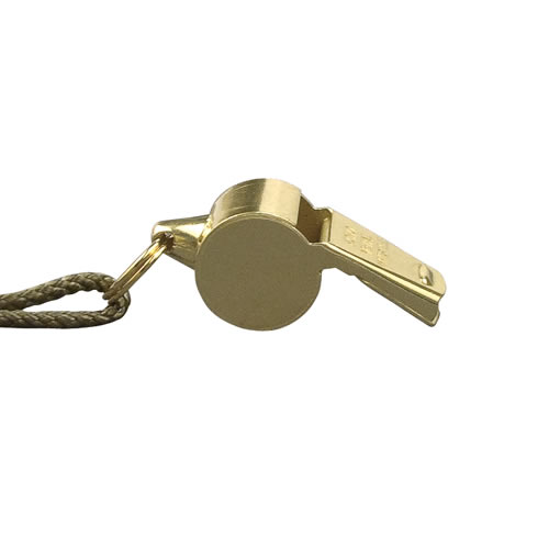 Sifflet de police en métal, nickelé avec finition en laiton. Cordon inclus. Plus d'informations