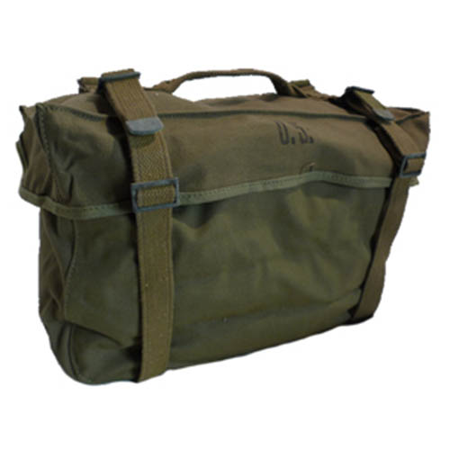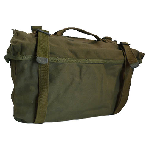 Petit sac à dos de campagne M1945 d'origine, neuf. Fermeture à boucle, sangle pour un transport facile, intérieur caoutchouté, peut être porté à la ceinture (à l'aide de deux clips) ou en bandoulière à l'aide d'une sangle. Volume : environ 10 litres. Plus d'informations