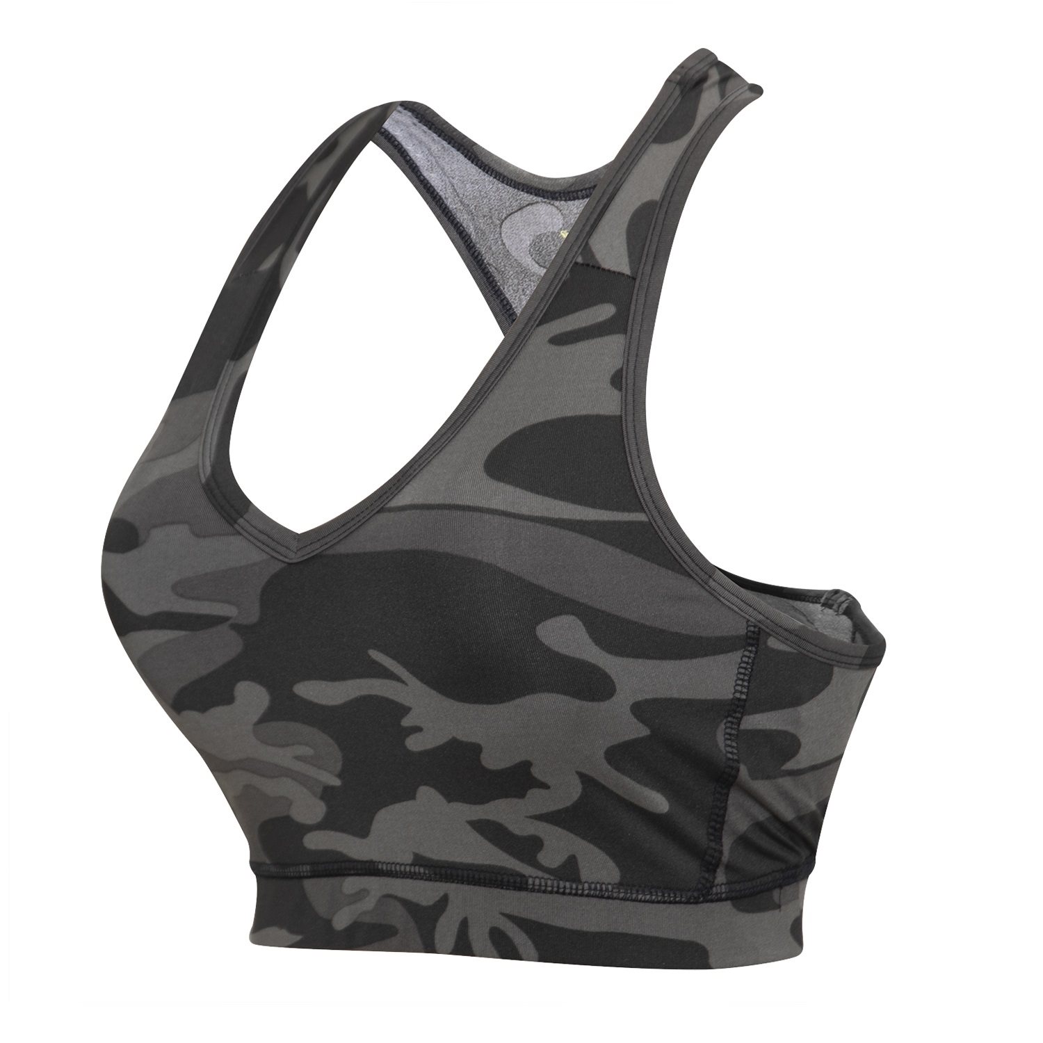 Soutien-gorge de sport au motif camouflage américain. Confortable, agréable à porter, adapté à toutes les activités physiques. Matière à séchage rapide - 90 % polyester, 10 % élasthanne. Rembourrage amovible inclus. Plus d'informations