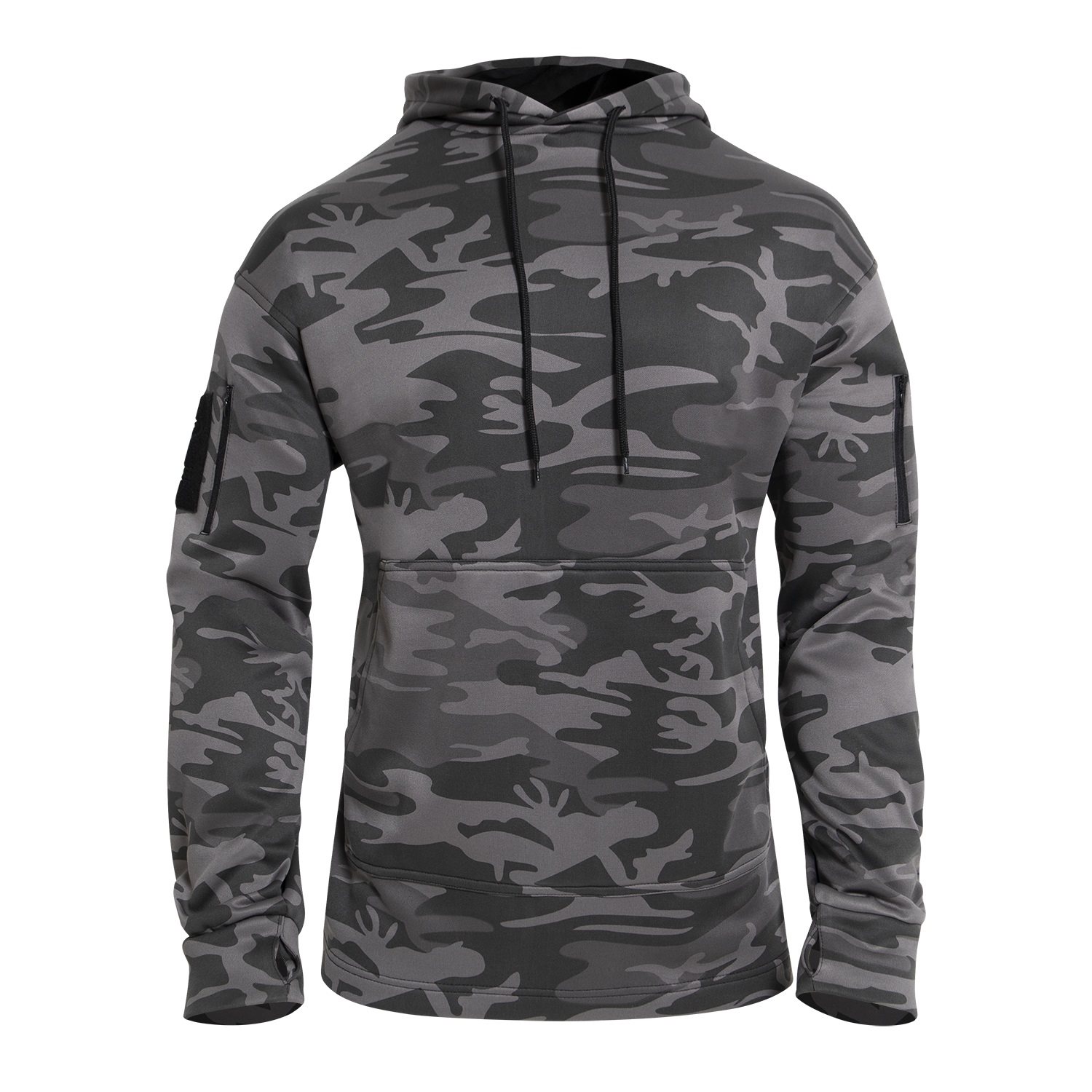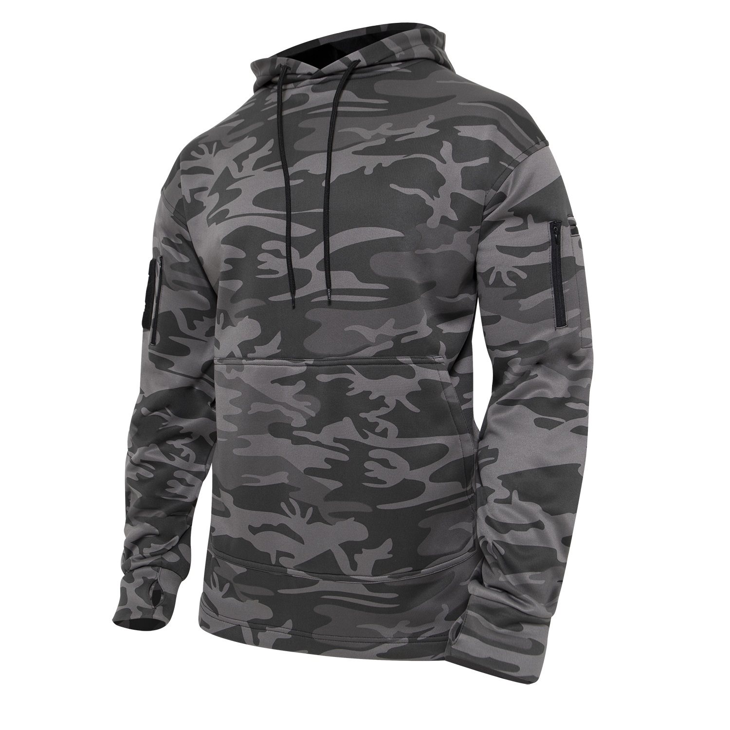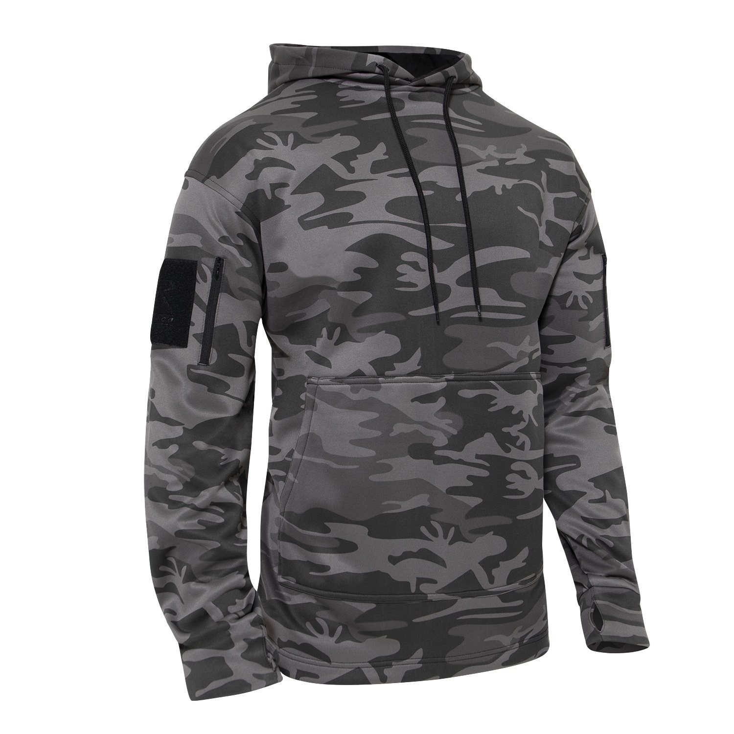 Sweat-shirt tactique avec poche avant intégrée pour les mains, également appelée « poche kangourou », est spécialement conçue pour les porteurs d'armes courtes. Ce qui la distingue des autres sweats à capuche, c'est l'ouverture dans la poche avant. En cas de besoin, vous pouvez discrètement accéder à l'arme attachée à votre ceinture sans que l'agresseur ne s'en aperçoive. Le sweat à capuche est doté d'une poche zippée sur chaque manche, d'un panneau velcro sur la poche droite pour y placer des écussons à velcro, et d'une poche supplémentaire sur la poche gauche.