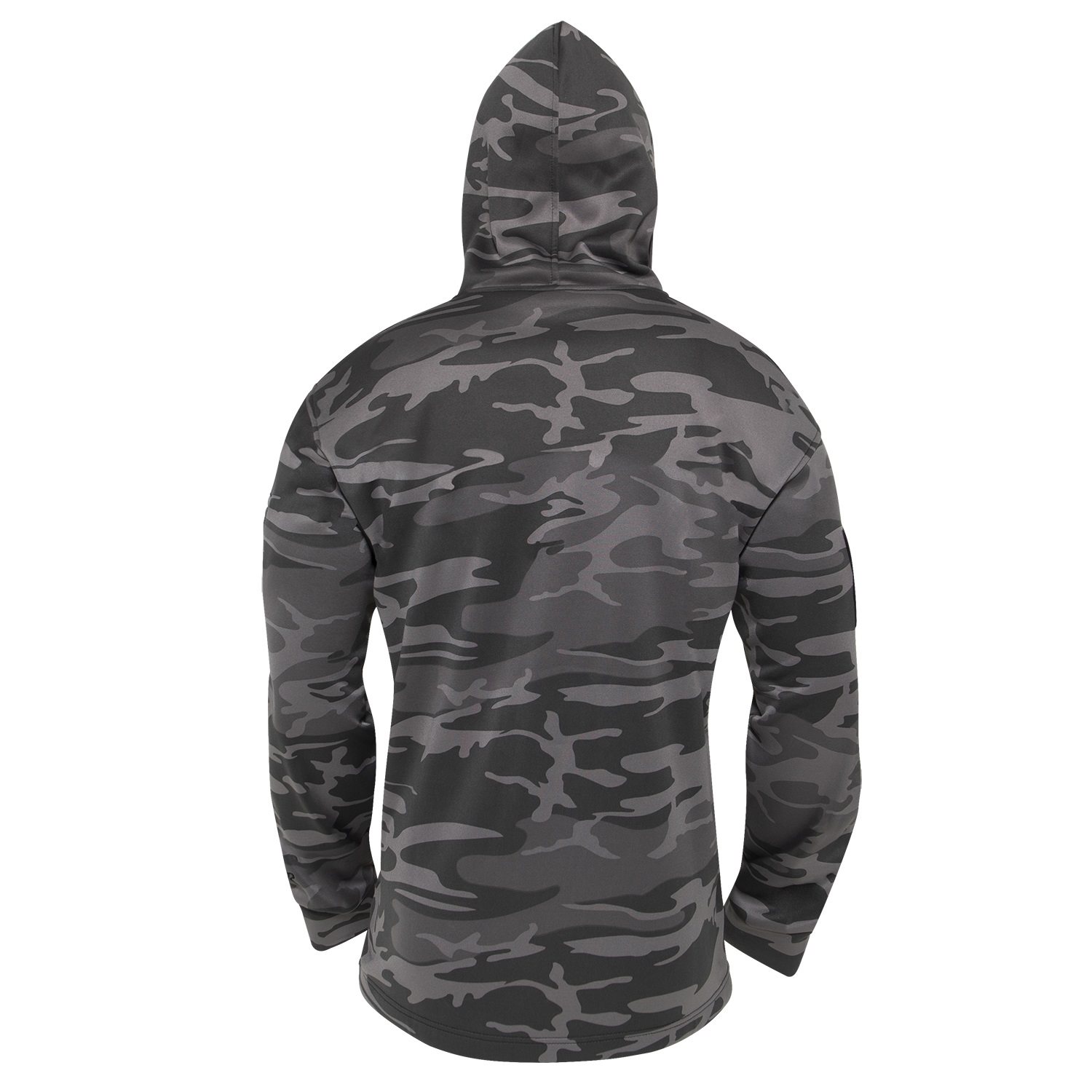 Sweat-shirt à capuche, poches sur les manches, bande velcro sur la manche permettant le port dissimulé d'une arme. Composition : 100 % polyester. Plus d'informations