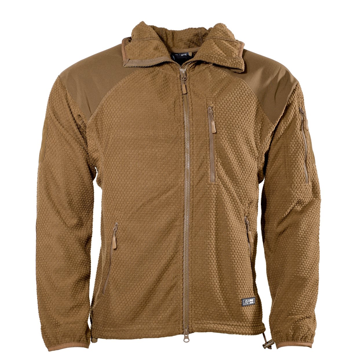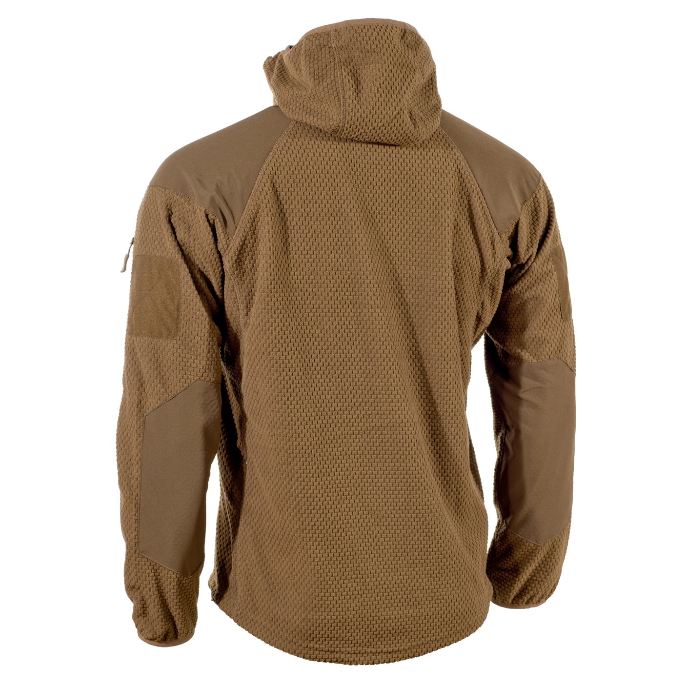 Le sweat-shirt se ferme à l'aide d'une fermeture éclair YKK à double sens avec une protection pour le cou et la barbe. La capuche est plutôt peu profonde et dotée d'un bord élastique. Les poches pour les mains à la taille se ferment à l'aide de fermetures éclair et peuvent facilement accueillir des mains gantées. La poche poitrine est idéale pour transporter de petits équipements ou des documents. À l'intérieur, vous trouverez un passe-câble pour les écouteurs, etc. La dernière poche se trouve sur la manche gauche. Si vous aimez personnaliser vos vêtements avec des écussons, vous pouvez utiliser les deux panneaux VELCRO sur les épaules. Les manches sont terminées par un ourlet élastique, l'ourlet inférieur est ajustable à l'aide d'un cordon avec bloqueur. Le dos du sweat-shirt est allongé.