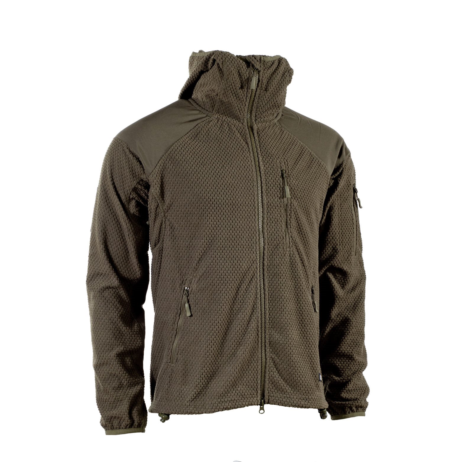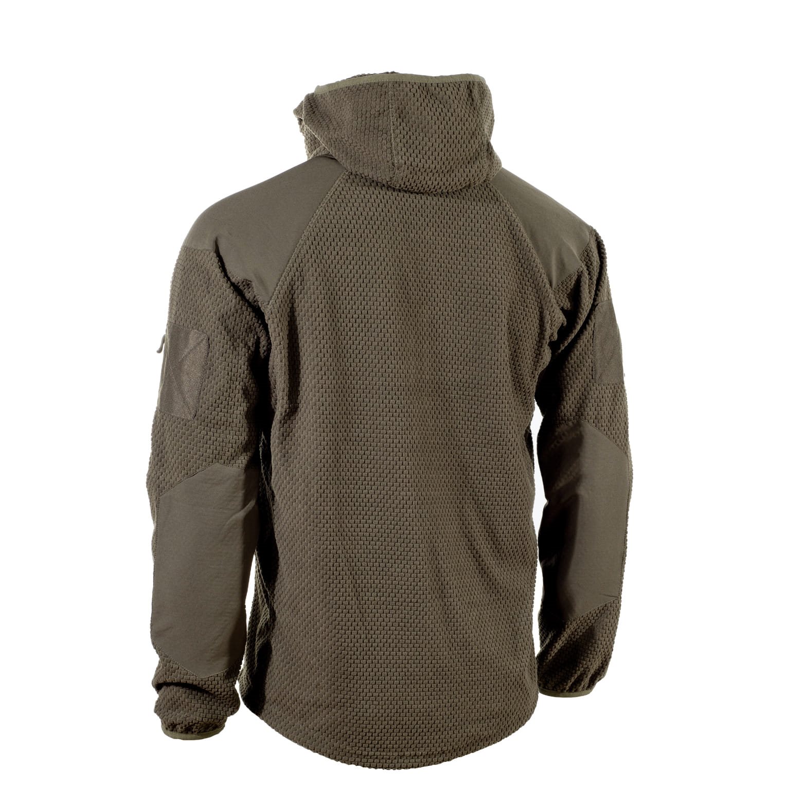Le sweat-shirt se ferme à l'aide d'une fermeture éclair YKK à double sens avec une protection pour le cou et la barbe. La capuche est plutôt peu profonde et dotée d'un bord élastique. Les poches pour les mains à la taille se ferment à l'aide de fermetures éclair et peuvent facilement accueillir des mains gantées. La poche poitrine est idéale pour transporter de petits équipements ou des documents. À l'intérieur, vous trouverez un passe-câble pour les écouteurs, etc. La dernière poche se trouve sur la manche gauche. Si vous aimez personnaliser vos vêtements avec des écussons, vous pouvez utiliser les deux panneaux VELCRO sur les épaules. Les manches sont terminées par un ourlet élastique, l'ourlet inférieur est ajustable à l'aide d'un cordon avec bloqueur. Le dos du sweat-shirt est allongé.