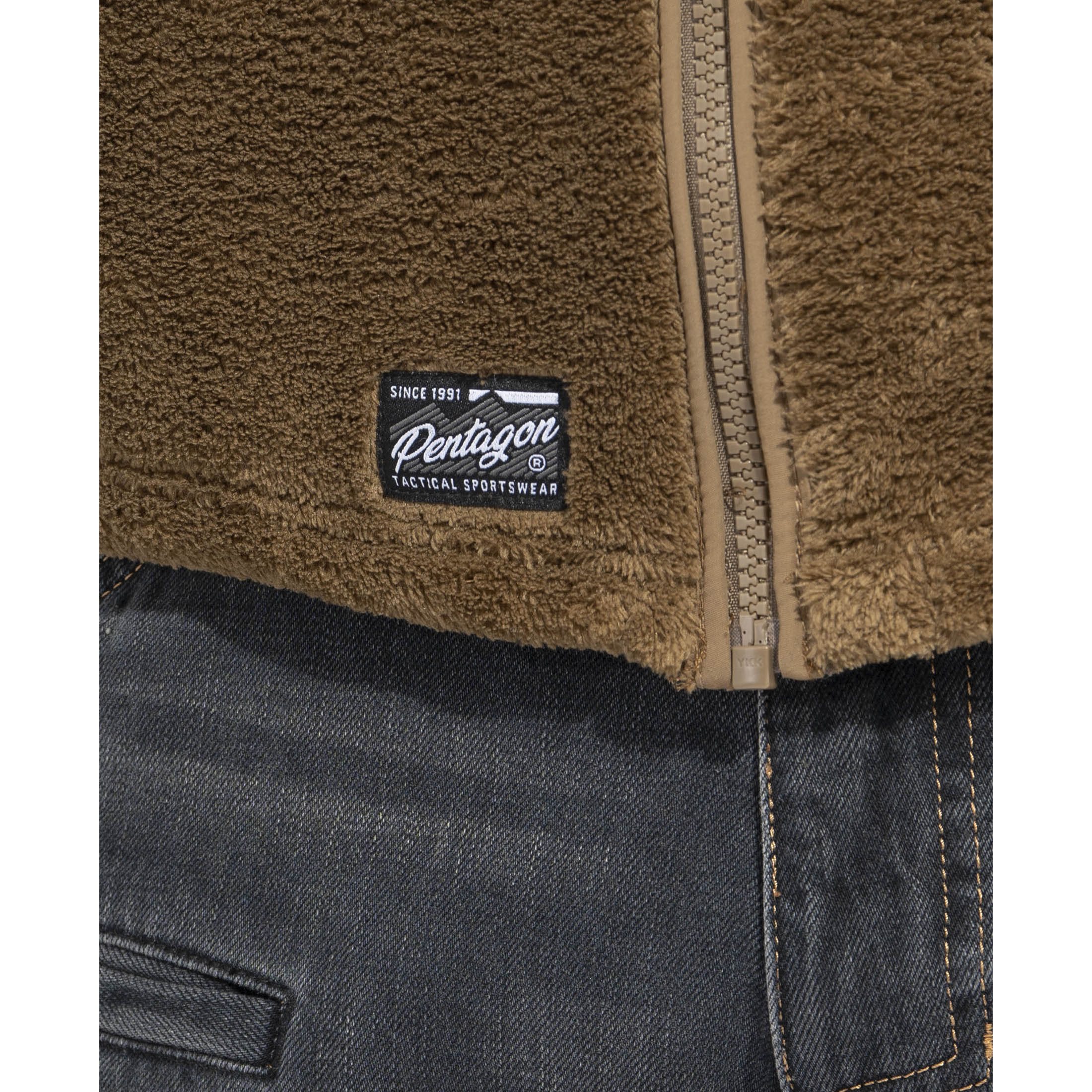Le sweat-shirt se ferme à l'aide d'une longue fermeture éclair YKK® centrale, qui se termine par une protection pour le cou et la barbe dans le col. Les poches pour les mains ont de larges ouvertures et peuvent être fermées par une fermeture éclair. La poche poitrine est en tissu renforcé et peut facilement contenir un smartphone ou un portefeuille.