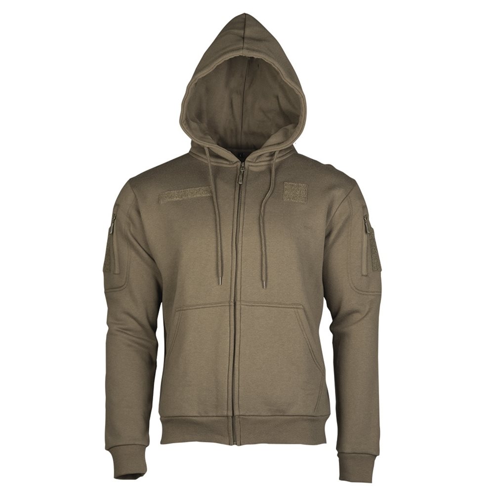 Sweat-shirt de sport confortable avec fermeture à glissière et bandes Velcro pour les écussons à l'arrière avec fermeture à velcro. Intérieur en matière agréable, douce et chaude. Capuche suffisamment spacieuse avec cordon de serrage à lacets.