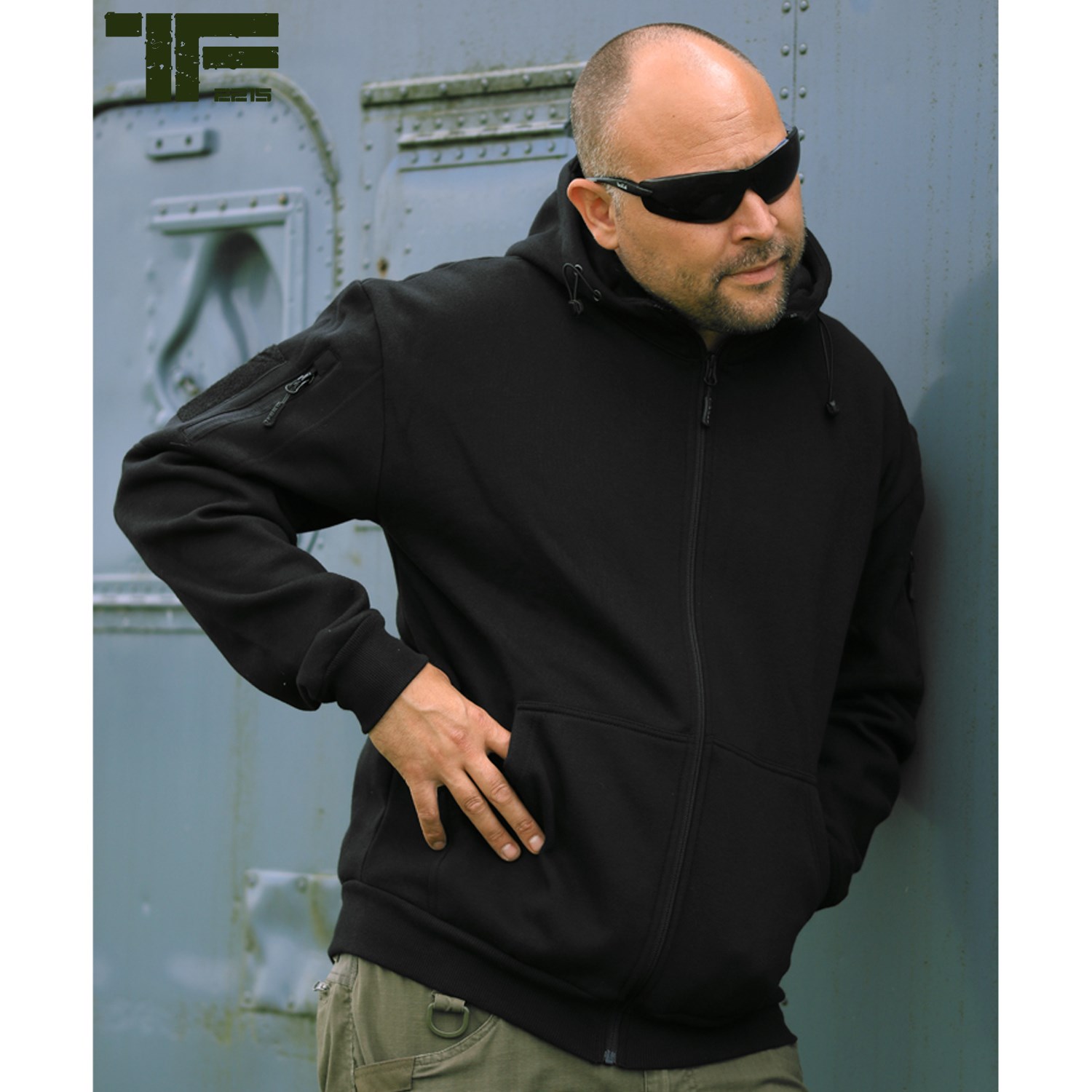 Sur le devant, vous trouverez deux poches profondes en biais qui vous permettront de réchauffer vos mains par temps froid ou de ranger vos objets de valeur tels que votre téléphone portable ou votre portefeuille. Deux autres poches sont situées sur les manches. Ces poches sont plates et se ferment à l'aide de fermetures éclair YKK verticales. À l'extérieur des poches se trouvent des bandes VELCRO permettant d'y apposer des écussons ou des étiquettes nominatives. Le sweat-shirt est équipé d'une capuche réglable avec visière et fil à mémoire de forme, ce qui permet de l'ajuster confortablement.