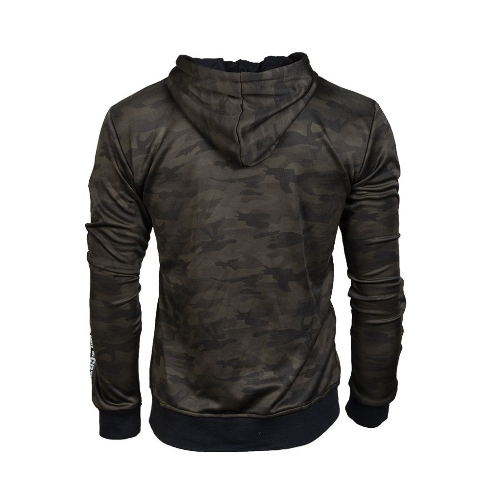 Sweat à capuche léger et confortable, motif camouflage WOODLAND, du fabricant allemand MIL-TEC. Le sweat se ferme à l'aide d'une fermeture éclair étanche, dispose d'une capuche réglable et d'une poche poitrine située à gauche de la fermeture éclair centrale. Le sweat présente des bandes imprimées avec le logo du fabricant sur les deux manches.