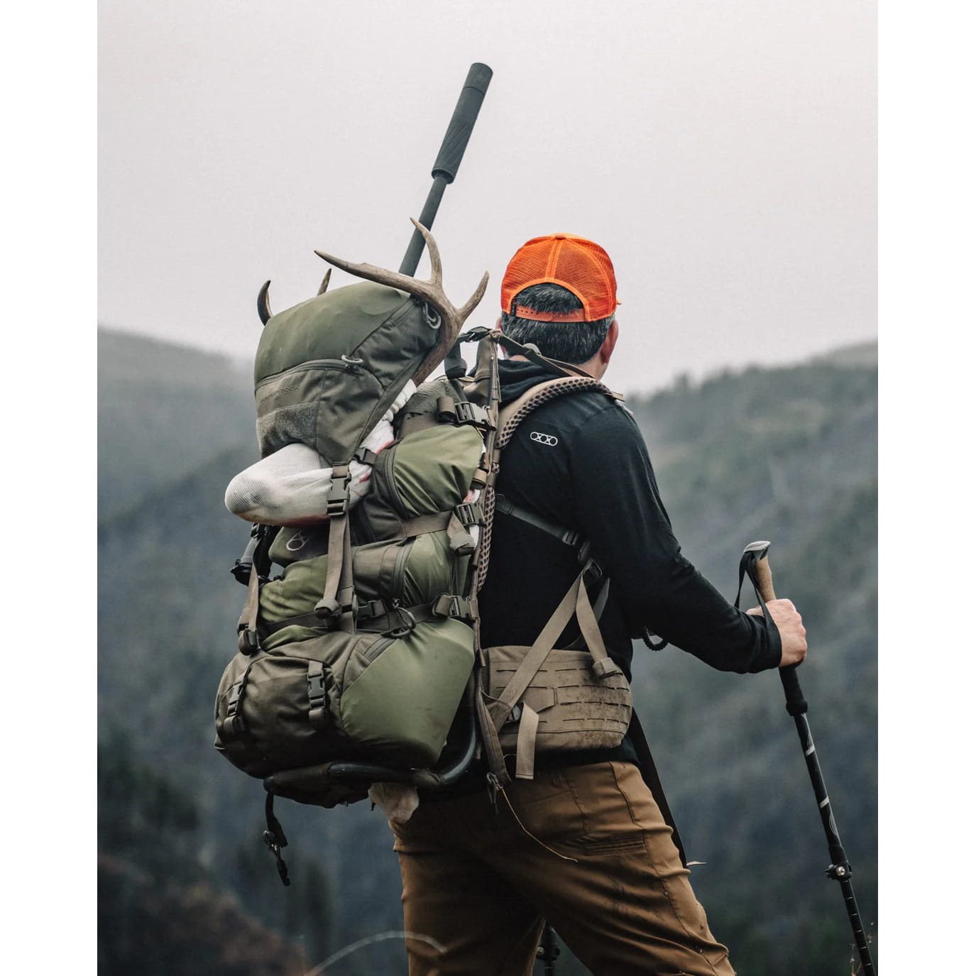 Plateforme de transport conçue pour transporter des équipements volumineux ou des sacs à dos et sacoches supplémentaires compatibles de la marque Eberlestock. La plateforme repose sur un cadre tubulaire en aluminium Intex II, courbé à 90° dans sa partie inférieure, ce qui crée une « étagère » permettant de poser des charges volumineuses (caisses de munitions, bidons, etc.). La capacité de charge de la plate-forme dépasse 300 kg. L'ensemble du système de transport est compatible avec les produits de la gamme de chasse EMOD HUNT de la marque EBERLESTOCK. Par rapport à la génération précédente Mainframe II, il offre un réglage plus précis de la hauteur des sangles à l'aide d'une bande Velcro sécurisée par deux sangles sur chaque épaule. La ceinture lombaire est recouverte de silicone à l'intérieur, ce qui empêche les vêtements de se retrousser et l'équipement de bouger de manière indésirable lors d'activités dynamiques.