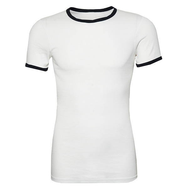 T-shirt marin élégant avec bordures bleues. Composition : 100 % coton.