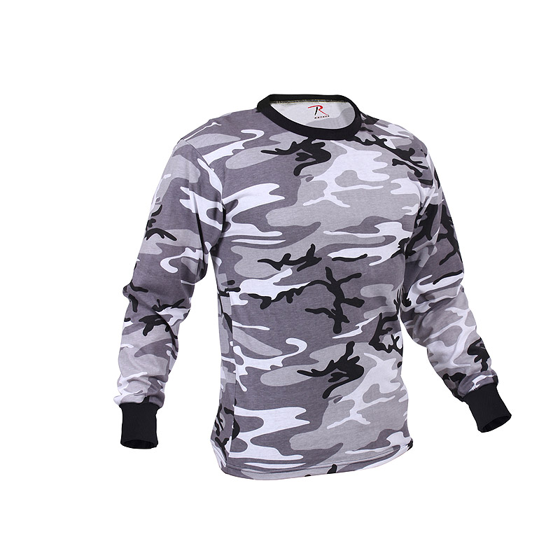 T-shirt militaire de qualité à manches longues, motif camouflage, de la marque Rothco. Disponible en différents motifs camouflage classiques et modernes, assortis aux pantalons et chemises BDU de la marque Rothco. Convient également pour l'impression.