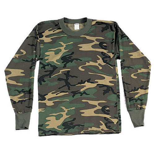 T-shirt à manches longues pour enfant avec motif camouflage Woodland. Composition : 60 % coton, 40 % polyester.