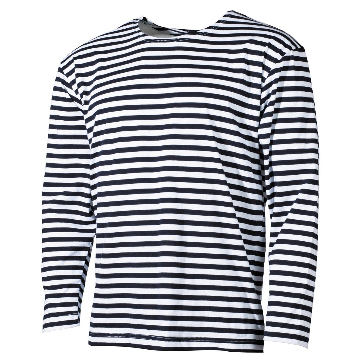 T-shirt marin à rayures, manches longues, idéal pour l'été. Composition : 100 % coton.