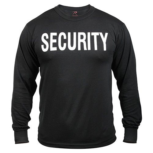 T-shirt de qualité de la marque ROTHCO, à manches longues. Grand lettrage de qualité « SECURITY » sur la poitrine. Convient aux services de sécurité, aux agences de gardiennage et aux services d'organisation. Ce t-shirt vous garantit la stabilité de la couleur noire et la durabilité du lettrage.