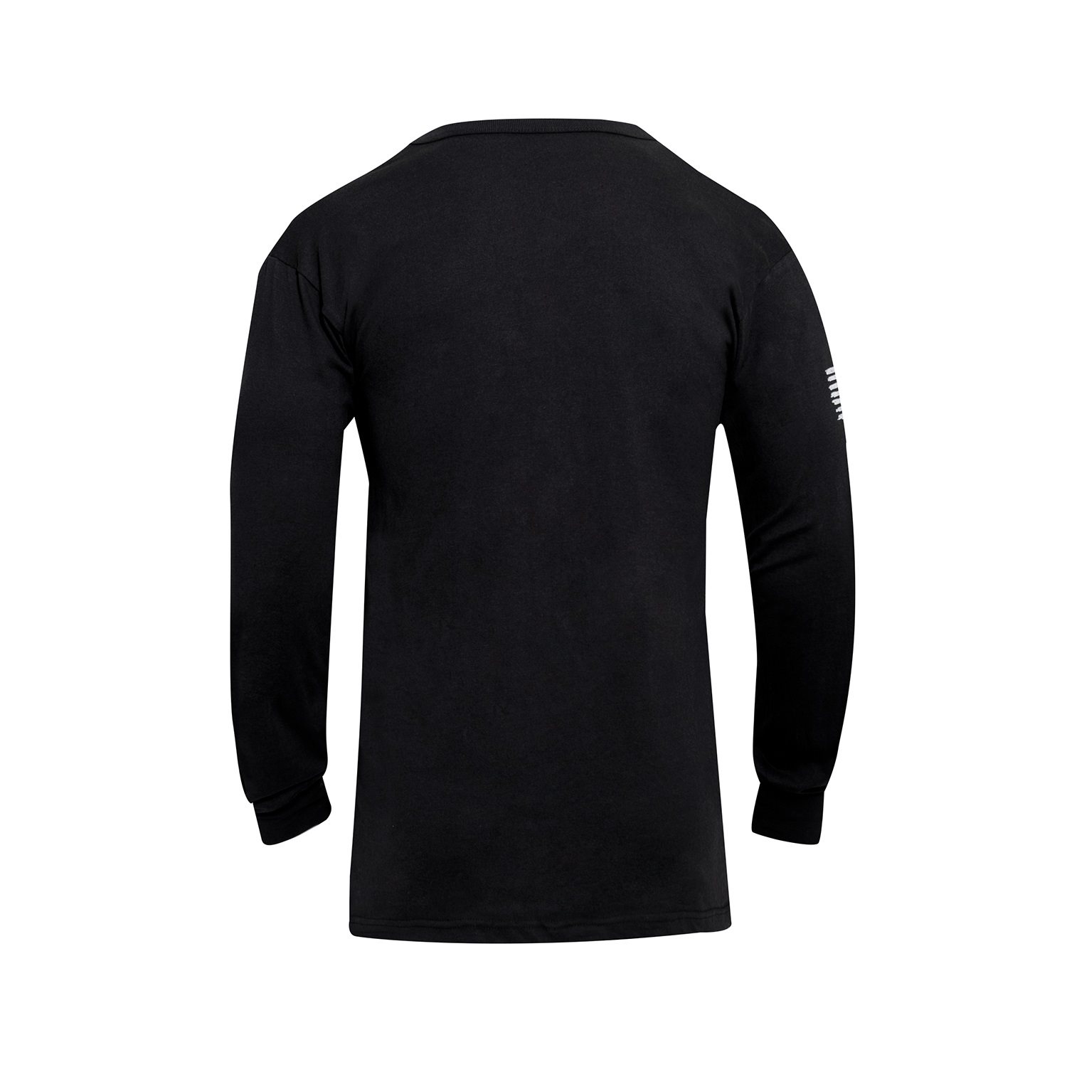 T-shirt à manches longues, avec un grand drapeau américain sur la poitrine, dont les bandes semblent avoir été peintes au pinceau, et un petit drapeau inversé sur la manche droite. Matériau : 60 % coton, 40 % polyester.