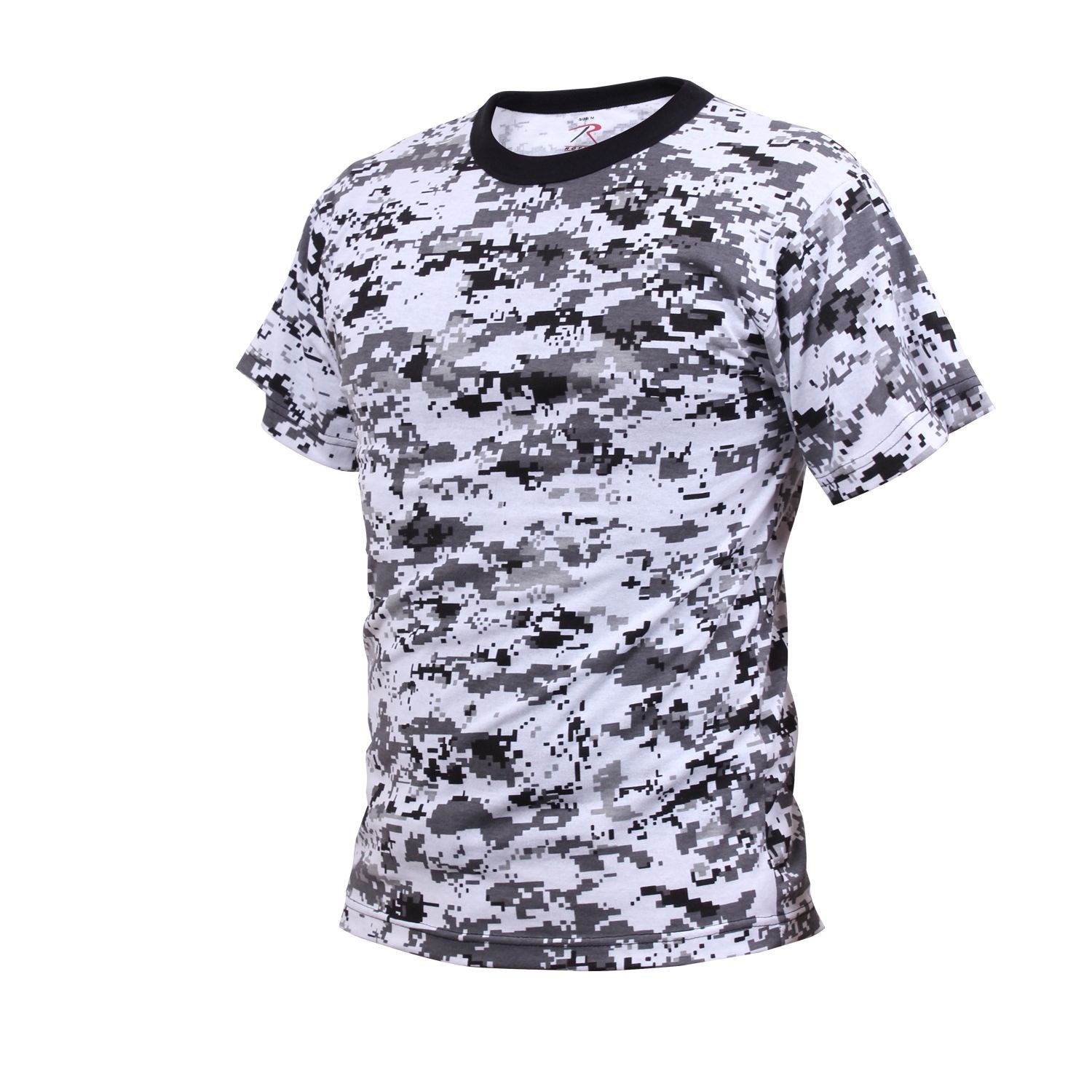 T-shirt militaire de qualité supérieure, motif camouflage, de la marque Rothco. Les t-shirts Rothco sont disponibles dans des motifs camouflage classiques et modernes, assortis aux pantalons et chemises BDU de la même marque. Ils sont également adaptés à l'impression.