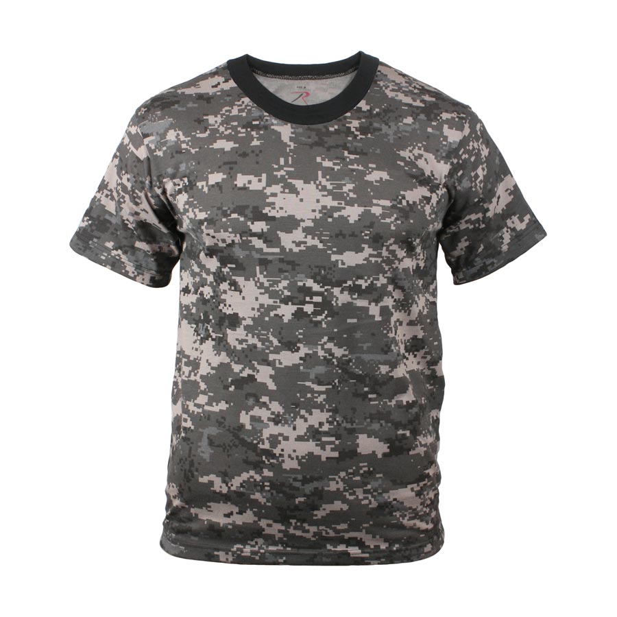 T-shirt militaire de qualité supérieure, motif camouflage, de la marque Rothco. Les t-shirts Rothco sont disponibles dans des motifs camouflage classiques et modernes, assortis aux pantalons et chemises BDU de la même marque. Ils sont également adaptés à l'impression.