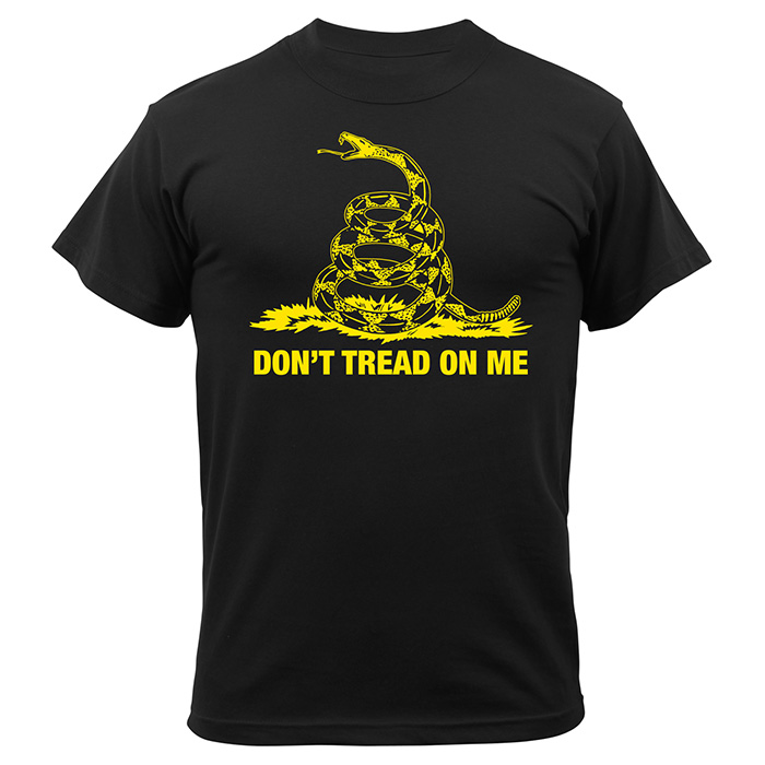 T-shirt avec l'inscription jaune DON'T TREAD ON ME (ne me marchez pas dessus) et