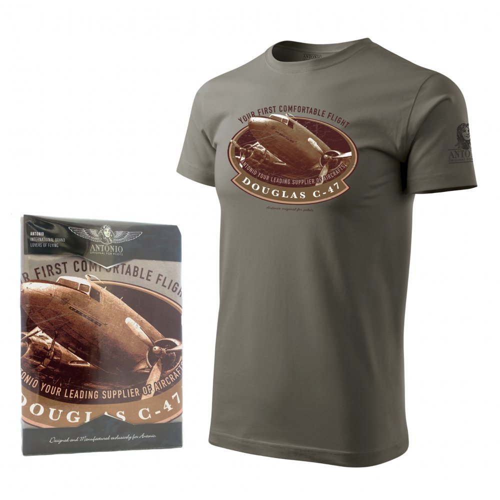 T-shirt à manches courtes avec impression de haute qualité représentant le légendaire avion de transport américain C-47 SKYTRAIN.
