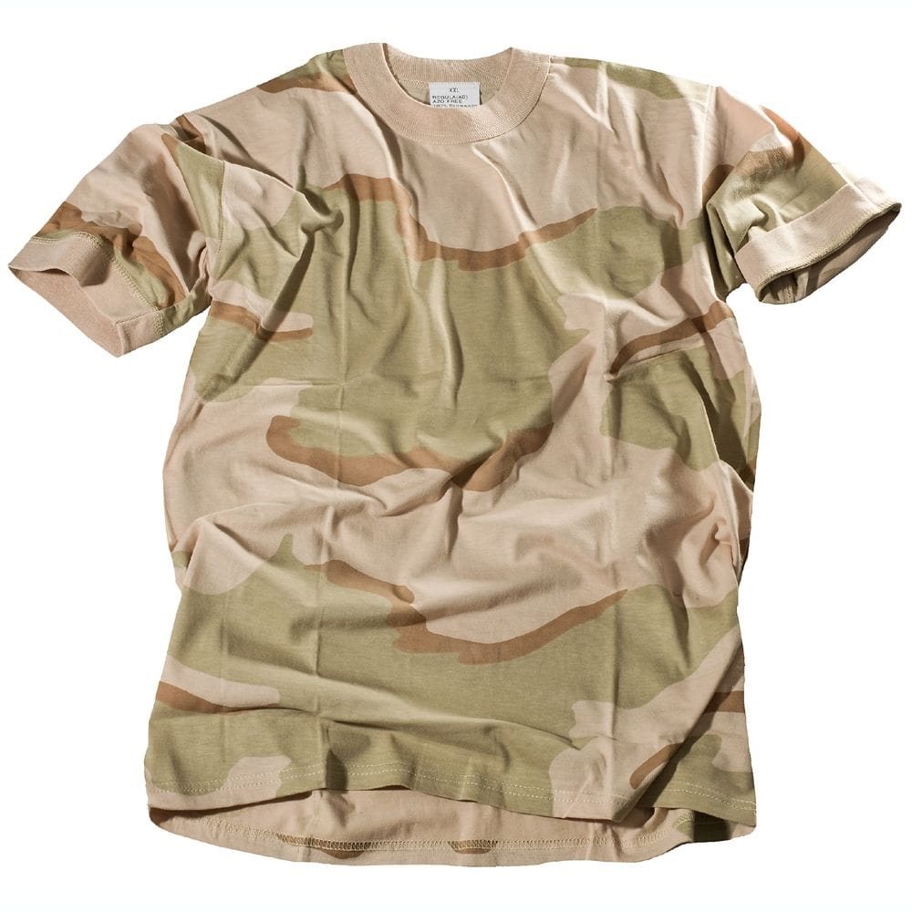 T-shirt enfant en coton camouflage à manches courtes. Camouflage désert américain 3-COL DESERT. Plus d'informations