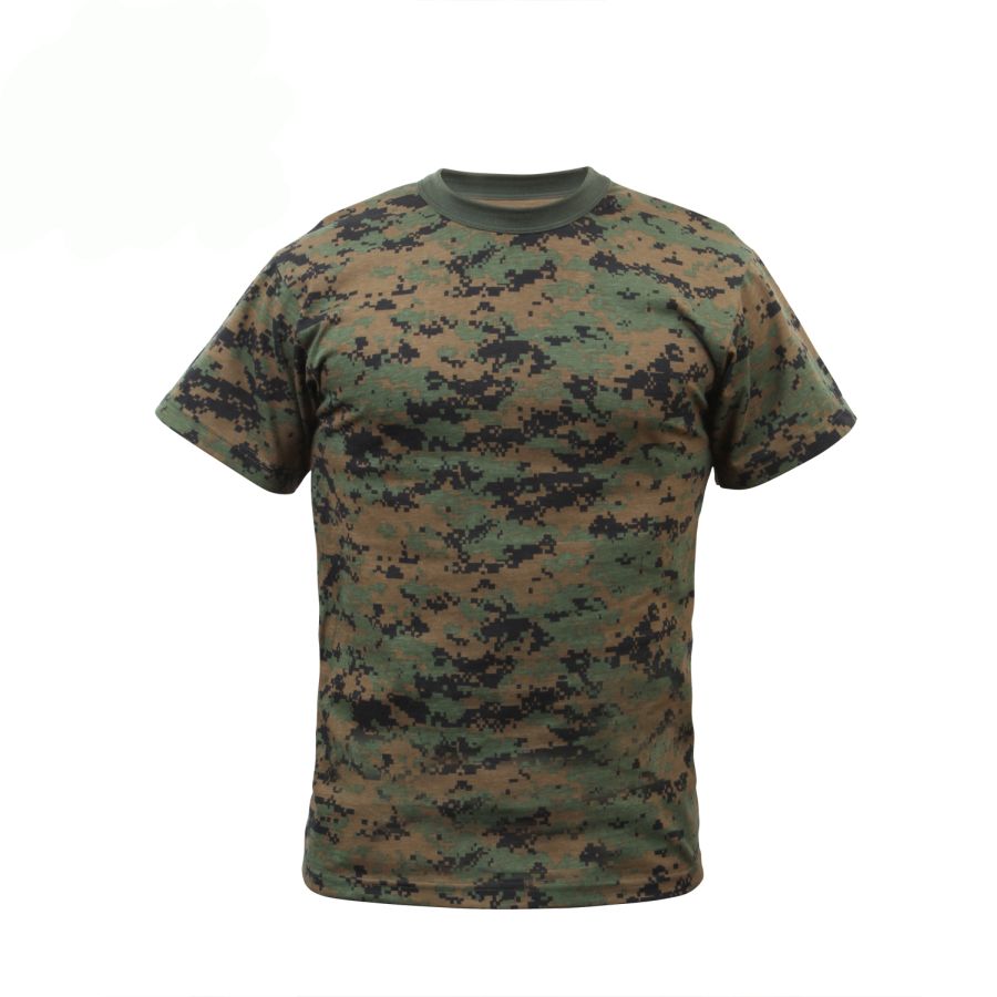 T-shirt pour enfant avec motif camouflage Digital Woodland. Composition : 60 % coton, 40 % polyester.