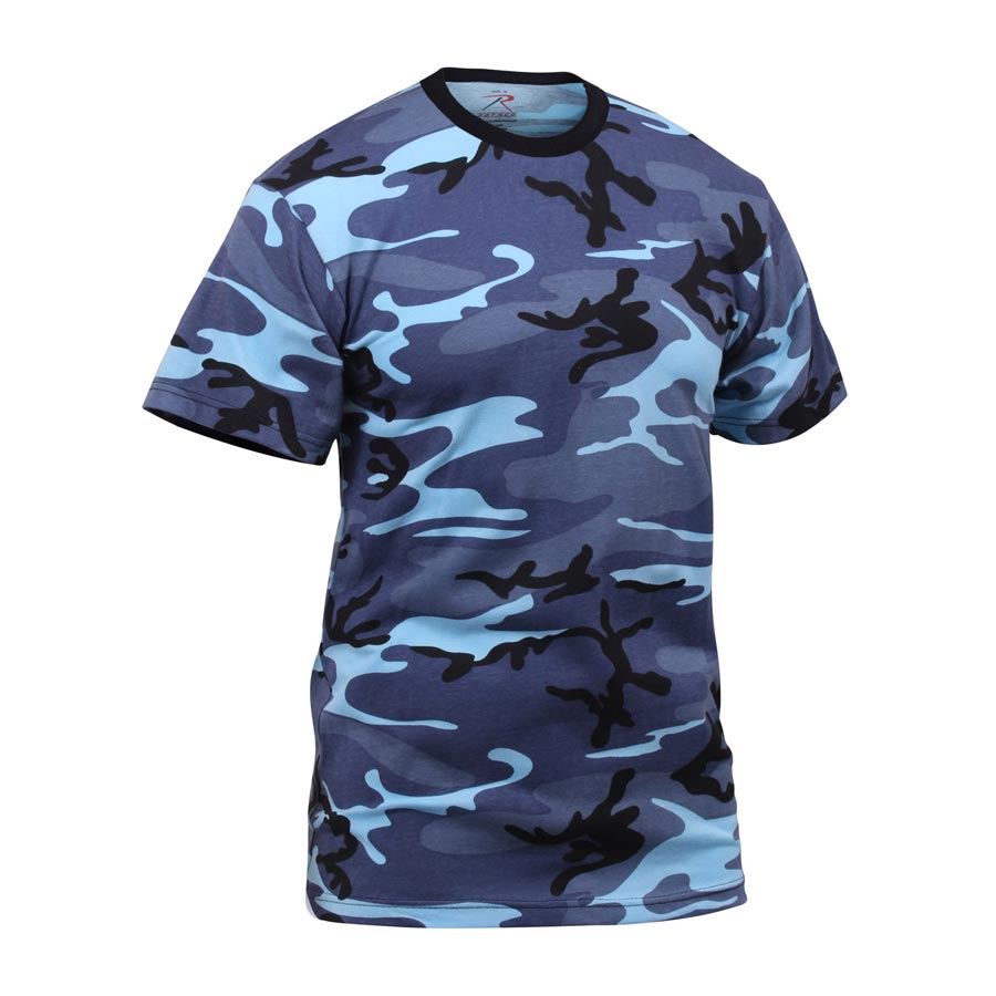T-shirt enfant à motif camouflage Sky Blue. Composition : 60 % coton, 40 % polyester. Plus d'informations