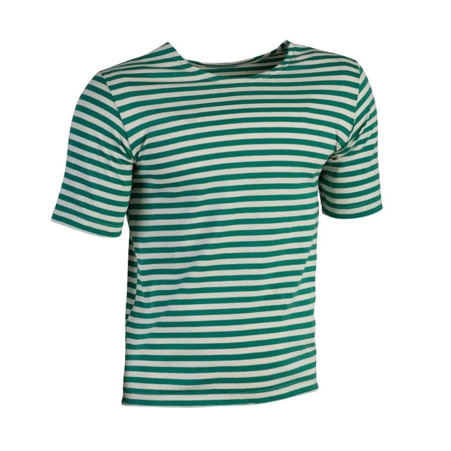 T-shirt marin rayé de couleur verte.