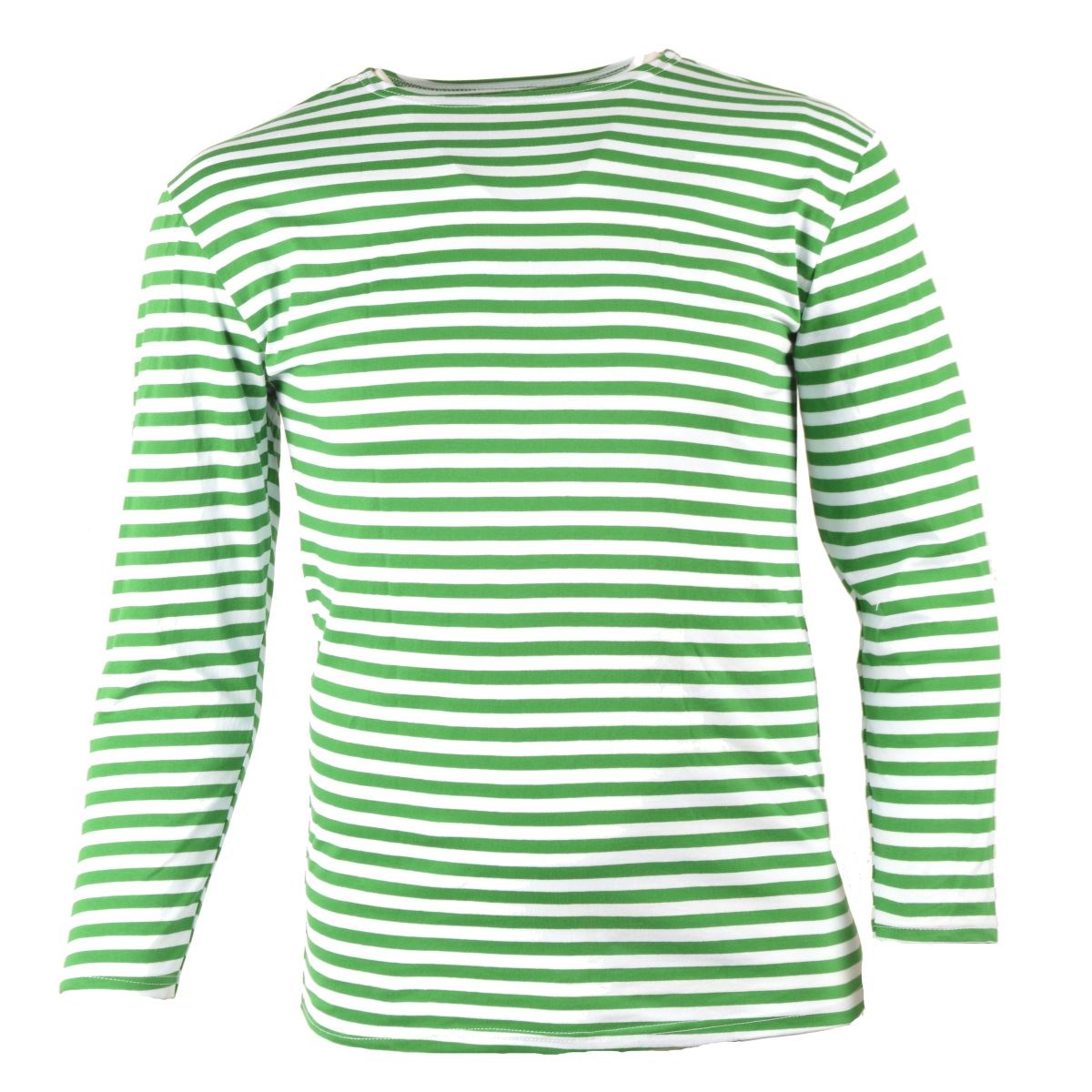 T-shirt marin rayé à manches longues avec rayures vertes et blanches. Fabrication de qualité, matière : coton. Plus d'informations