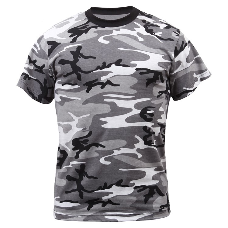 T-shirt militaire de qualité supérieure, motif camouflage, de la marque Rothco. Les t-shirts Rothco sont disponibles dans des motifs camouflage classiques et modernes, assortis aux pantalons et chemises BDU de la même marque. Ils sont également adaptés à l'impression.