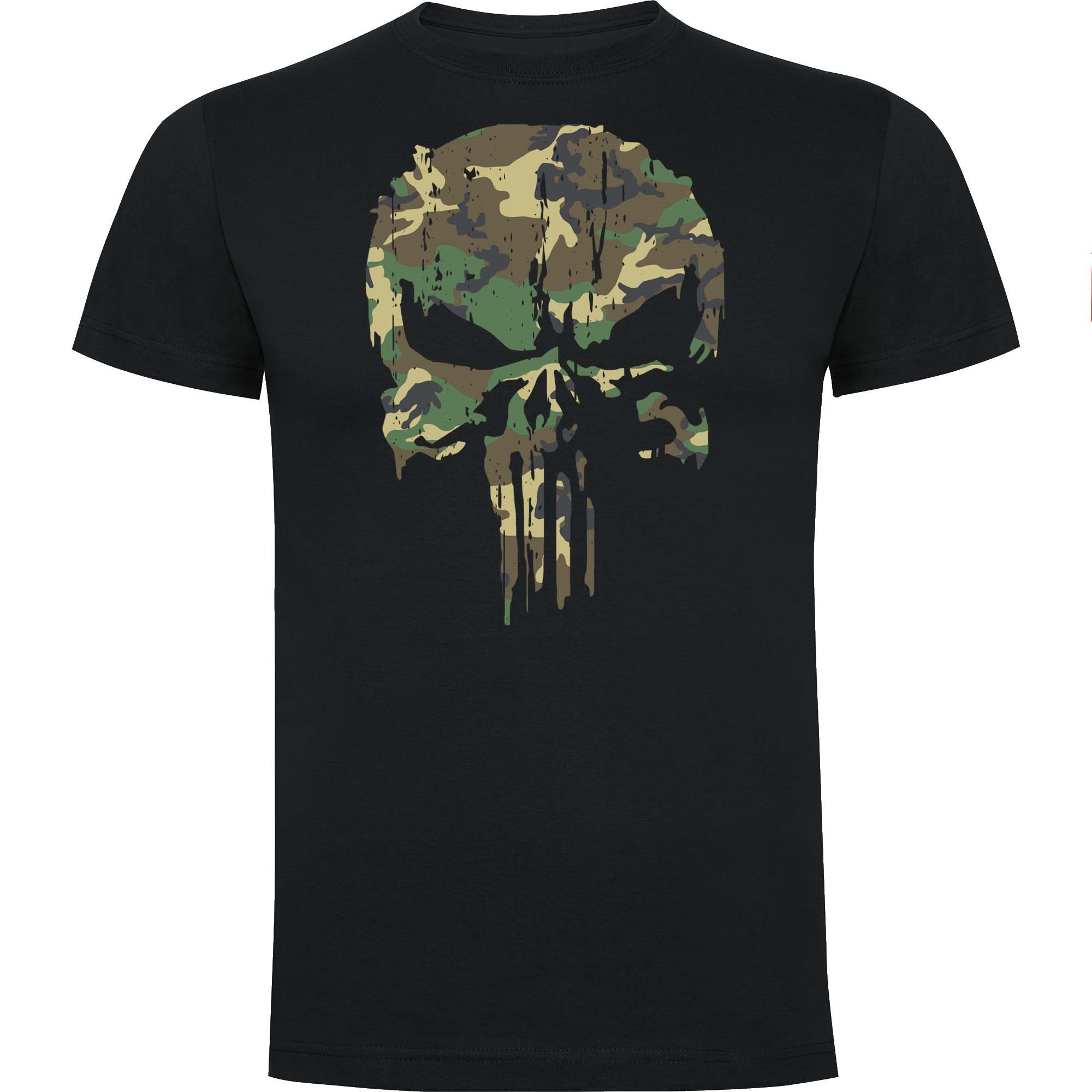 T-shirt noir avec impression tête de mort dans un motif camouflage. Composition : 100 % coton. Plus d'informations