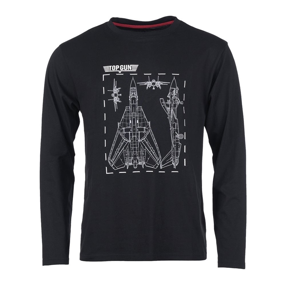 T-shirt en coton agréablement coupé, à manches longues, avec motif TOP GUN sur la poitrine.
