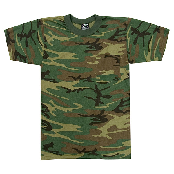 T-shirt militaire de qualité supérieure, modèle camouflage, de la marque Rothco, motif Woodland Camo. Avec une petite poche sur la poitrine.